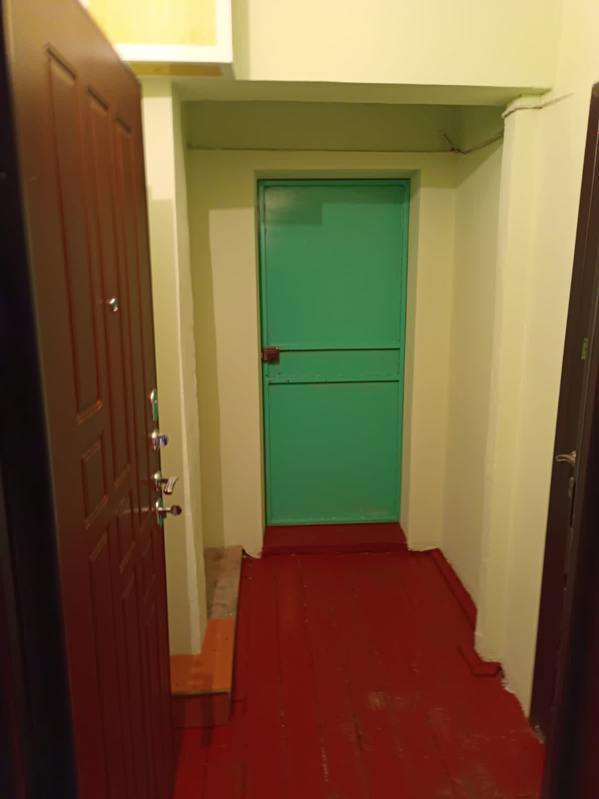 Квартира в общежитии на 5 этаже. Вода не проведена. Общая кухня и туалет с ванной. Соседи молодая пара.