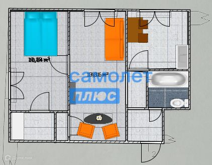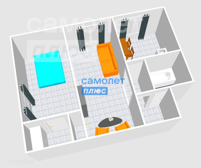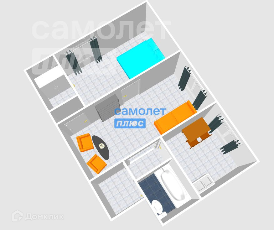 Общая площадь 42.4 м2