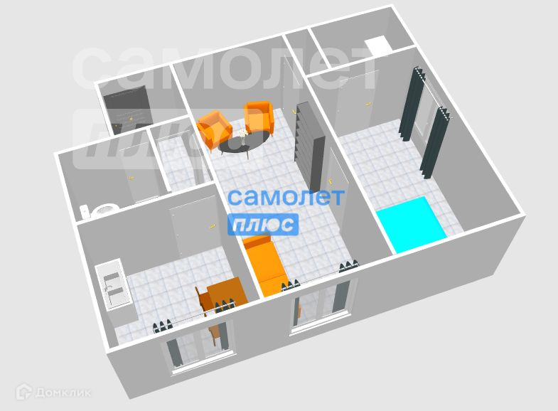 - санузел совмещен;