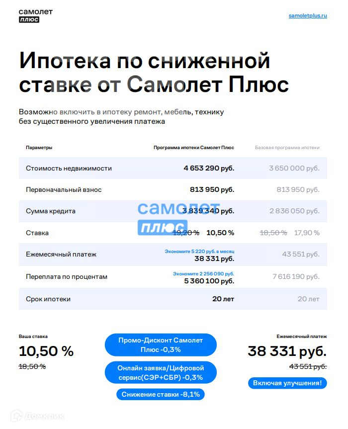 Расчет на ипотечном калькуляторе ONREALT.RU приблизительный, он не учитывает возможных дополнительных платежей. Точный расчет, условия ипотечных программ, срок, процентную ставку, график выплат и прочие особенности предоставляет банк при заключении договора об ипотечном кредитовании.
