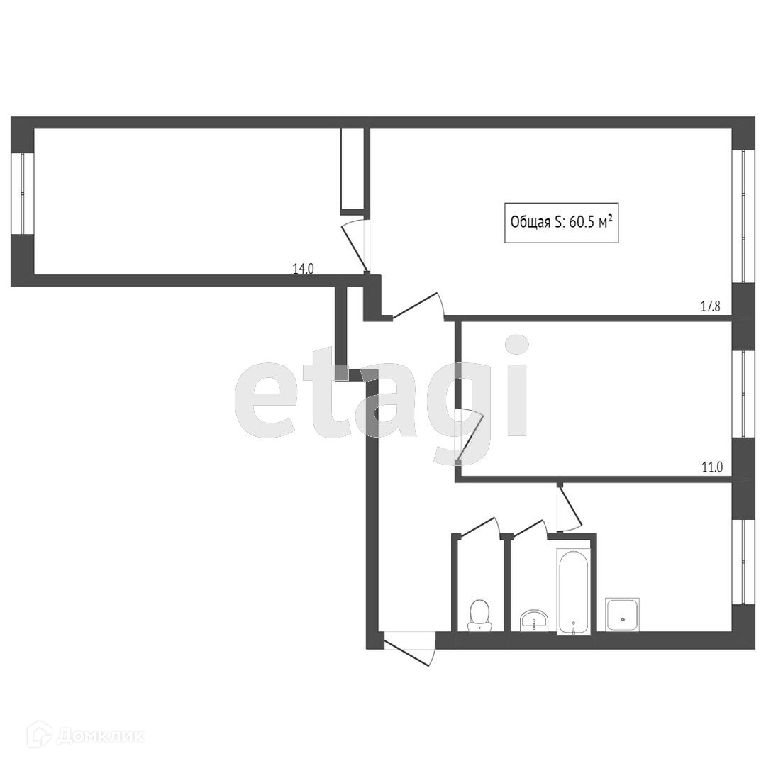 Общая площадь 60.5 м2
