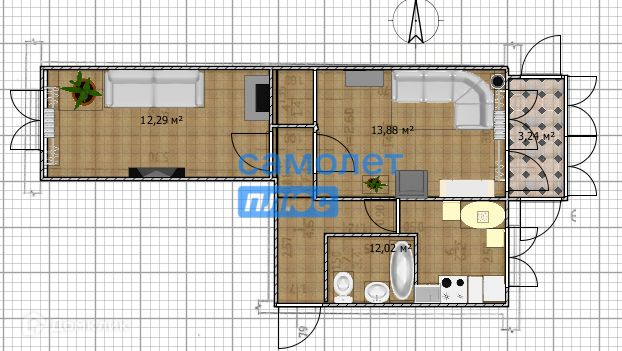 Общая площадь 45.5 м2