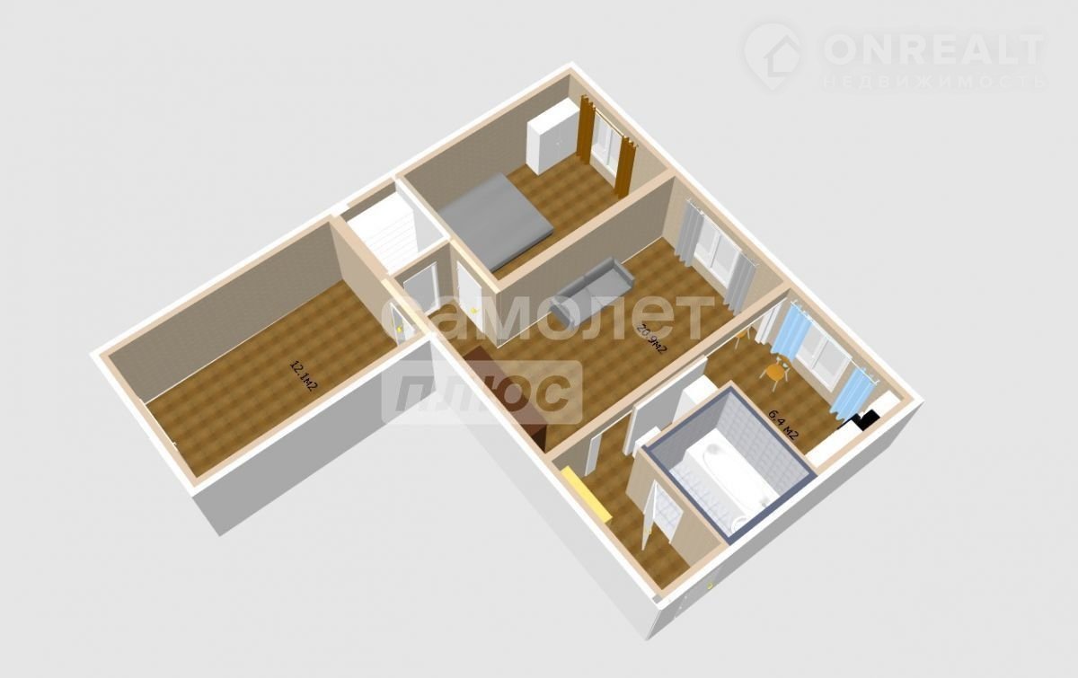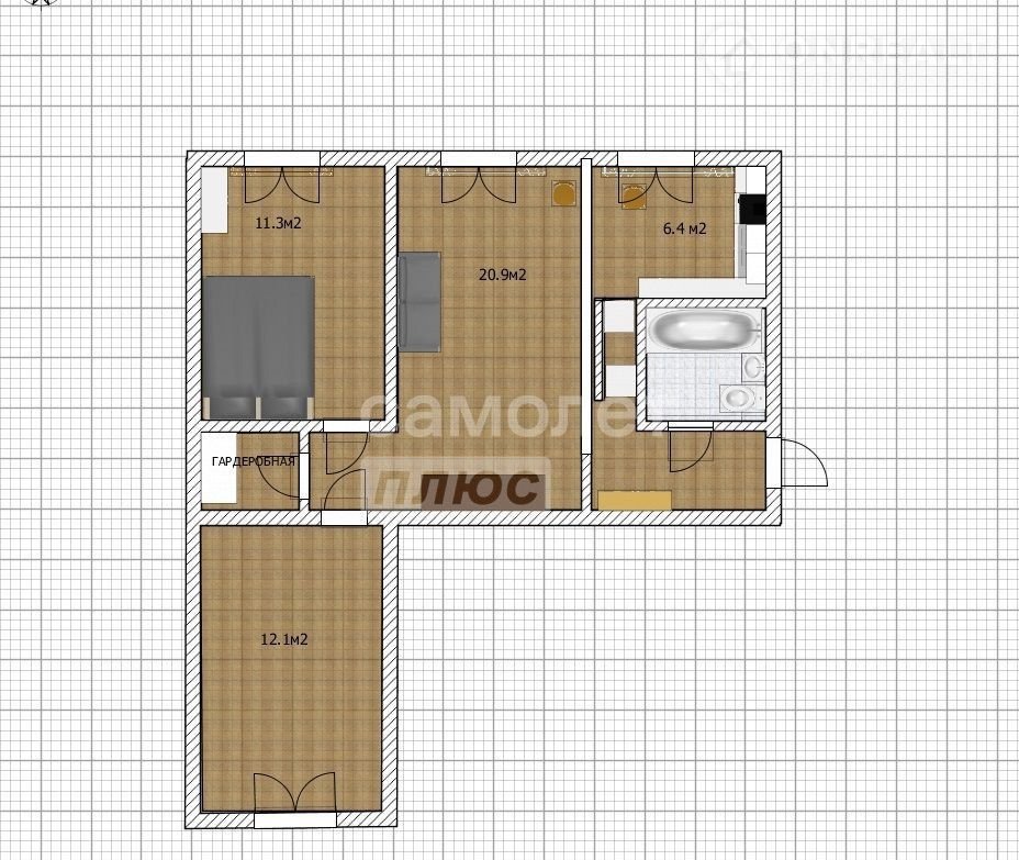 Жилая площадь 44.3 м2