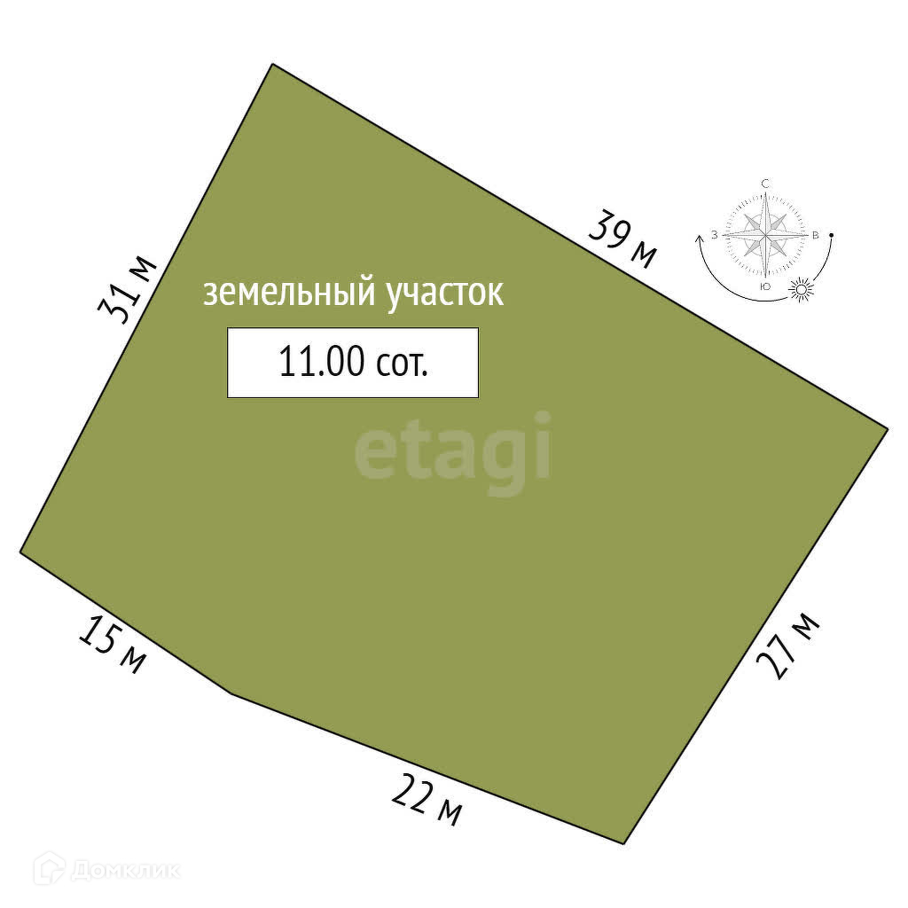 Площадь участка 11 сот.