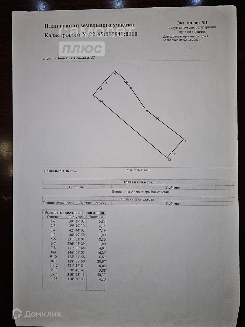 Участок под ИЖС, 8.16 сот. на продажу в Бийске, Сенная улица, 87