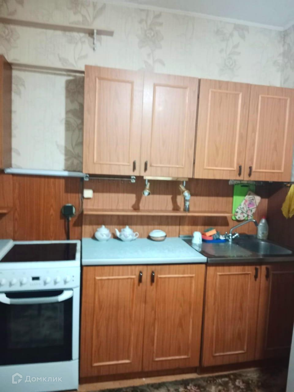 Имеется  холодильник, стиральная машина, утюг.  Встроенный шкаф, диван.