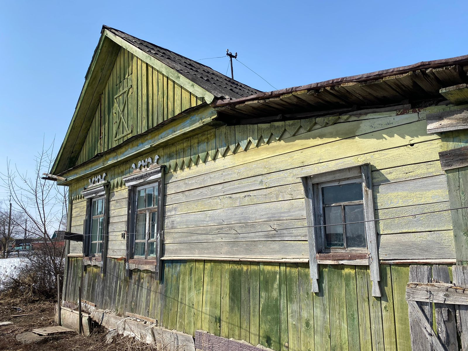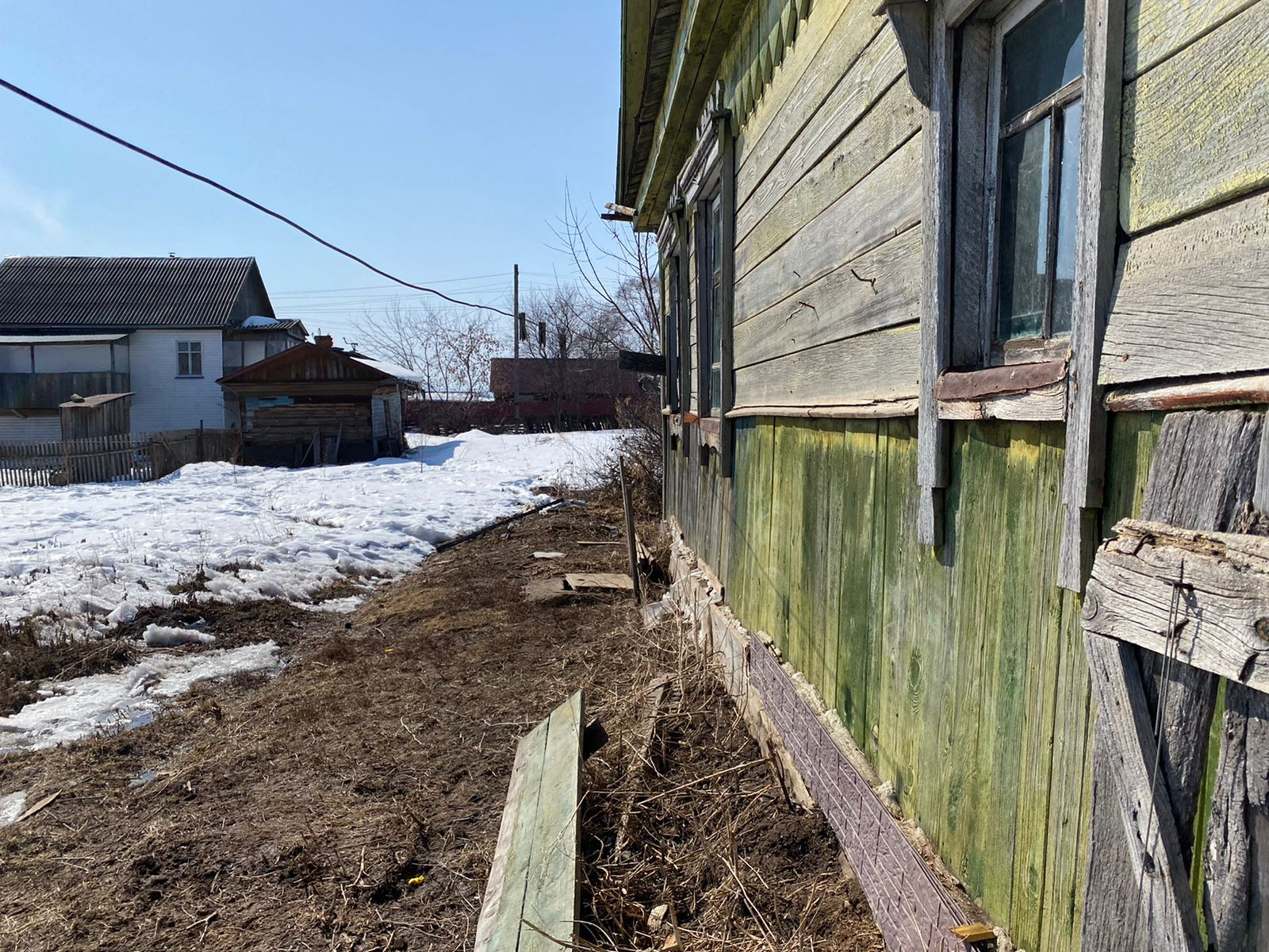 Деревянный дом, с землей, есть гараж