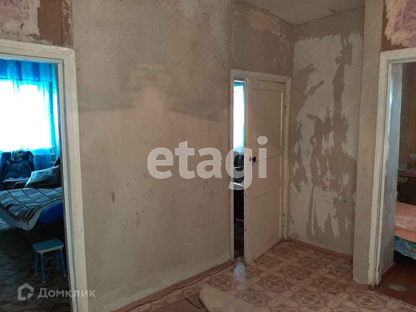 Материал стен - шлакоблок, стены отштукатурены, прогрунтованы, готовы под поклейку. В жилых комнатах полы залиты, уложено ДСП и сверху ДВП, покрашены. Высота потолков - 2,5 м..