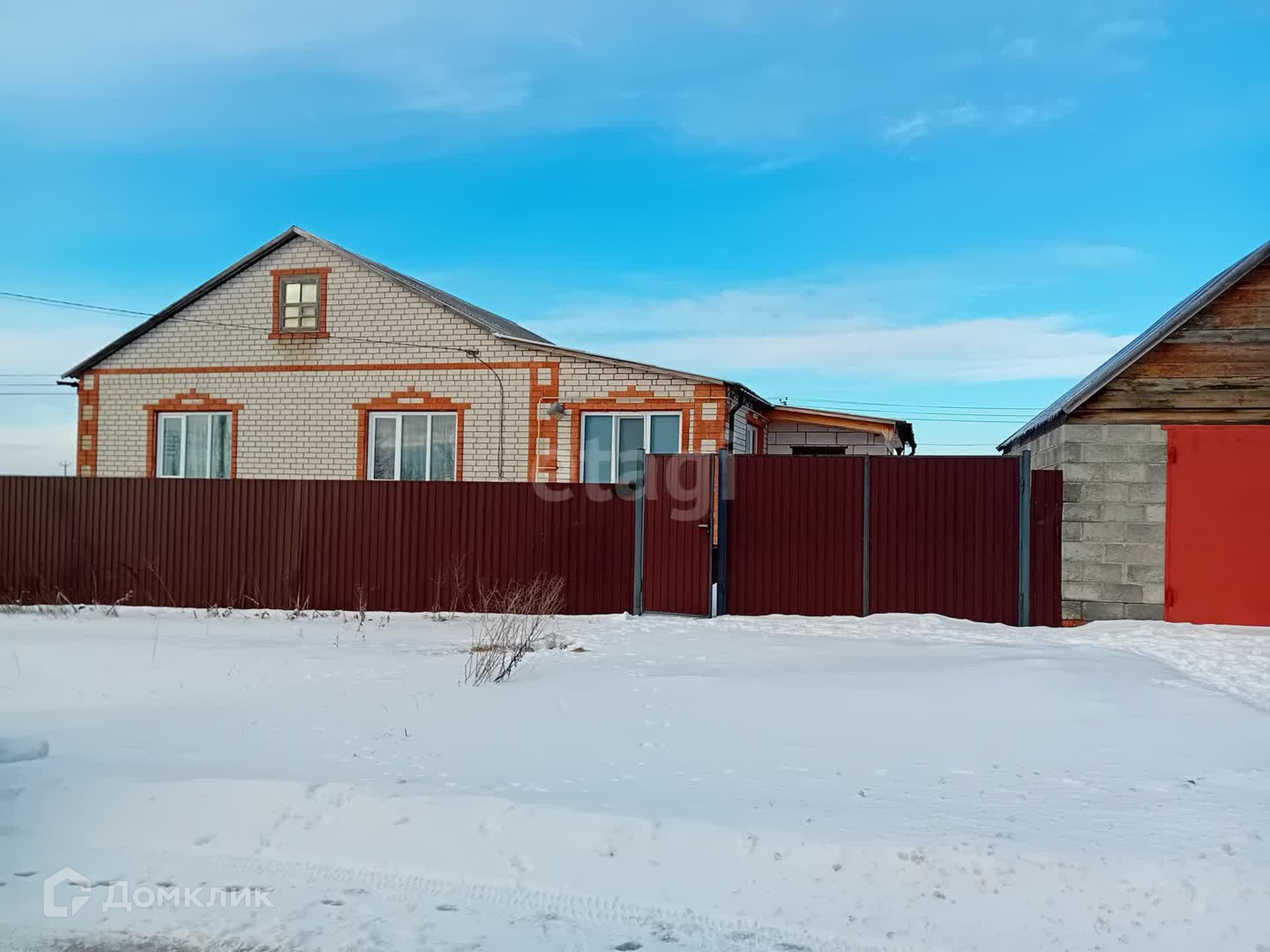 Земельный участок, на котором расположен дом, полностью огорожен. На территории двора расположен гараж, капитальный подвал и над ним хоз. помещение.