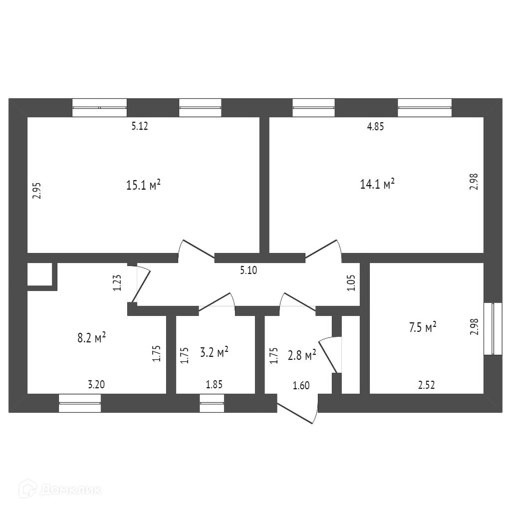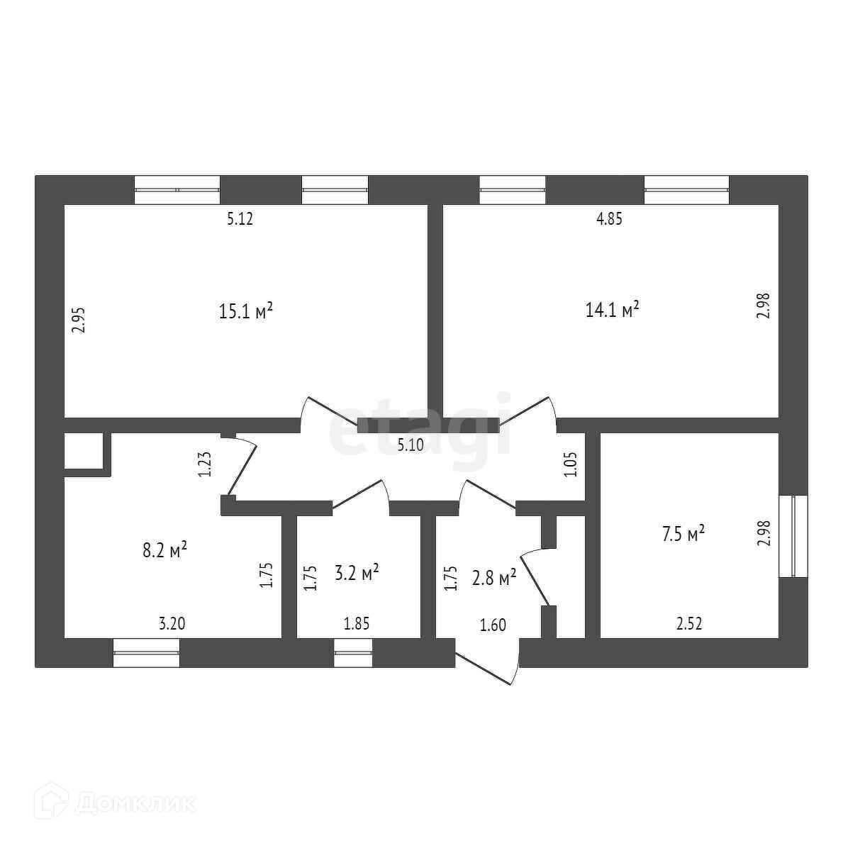 Общая площадь 57.7 м2