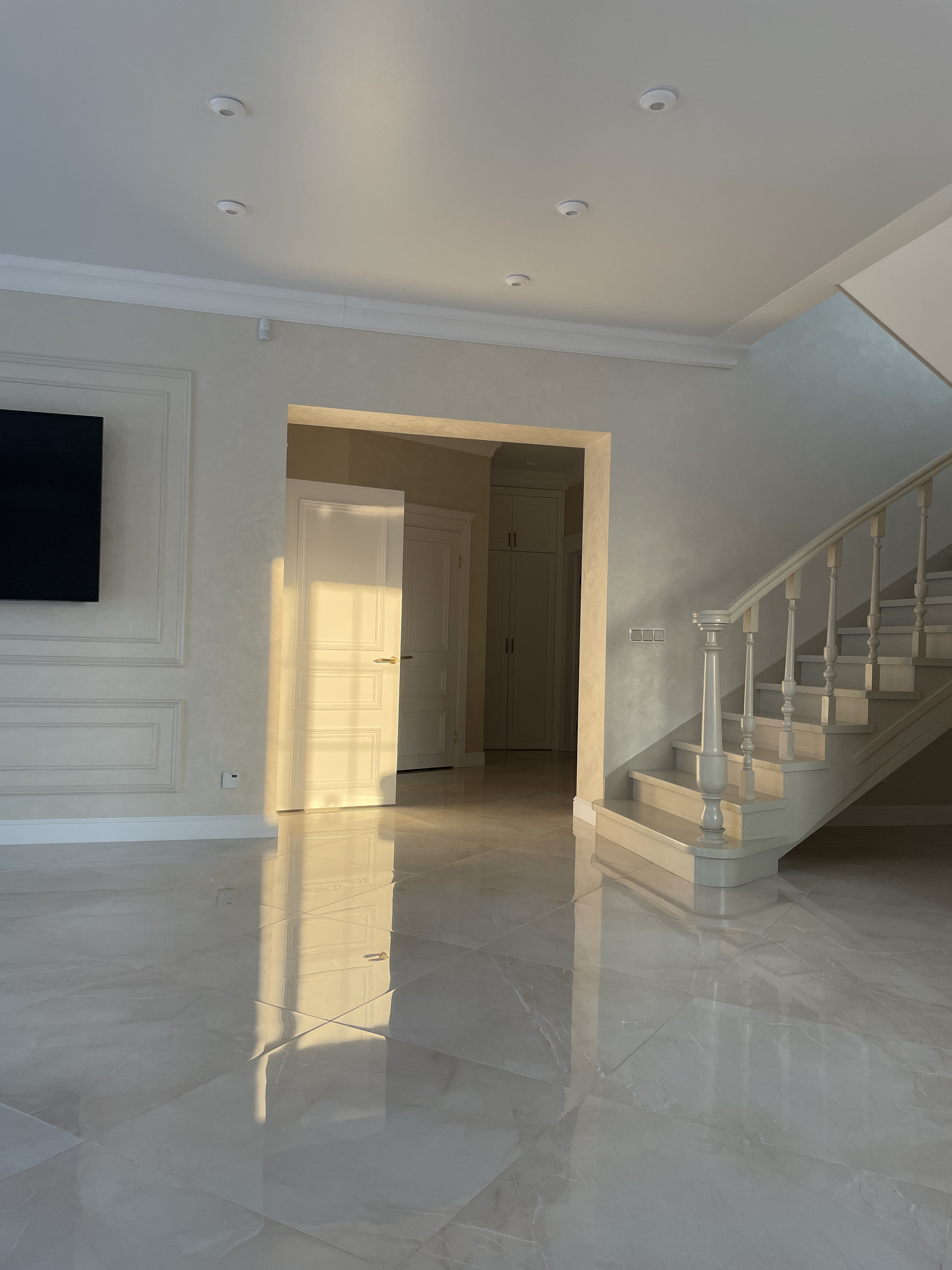 В доме 2 детские, взрослая спальня, кабинет, 2 сан узла( ванная и душевая комната) , столовая, зал, кухня, гардеробная