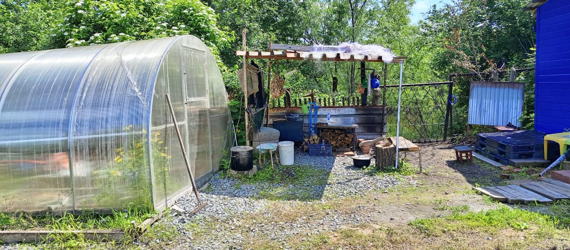 На участке есть теплица из поликарбоната, баня.