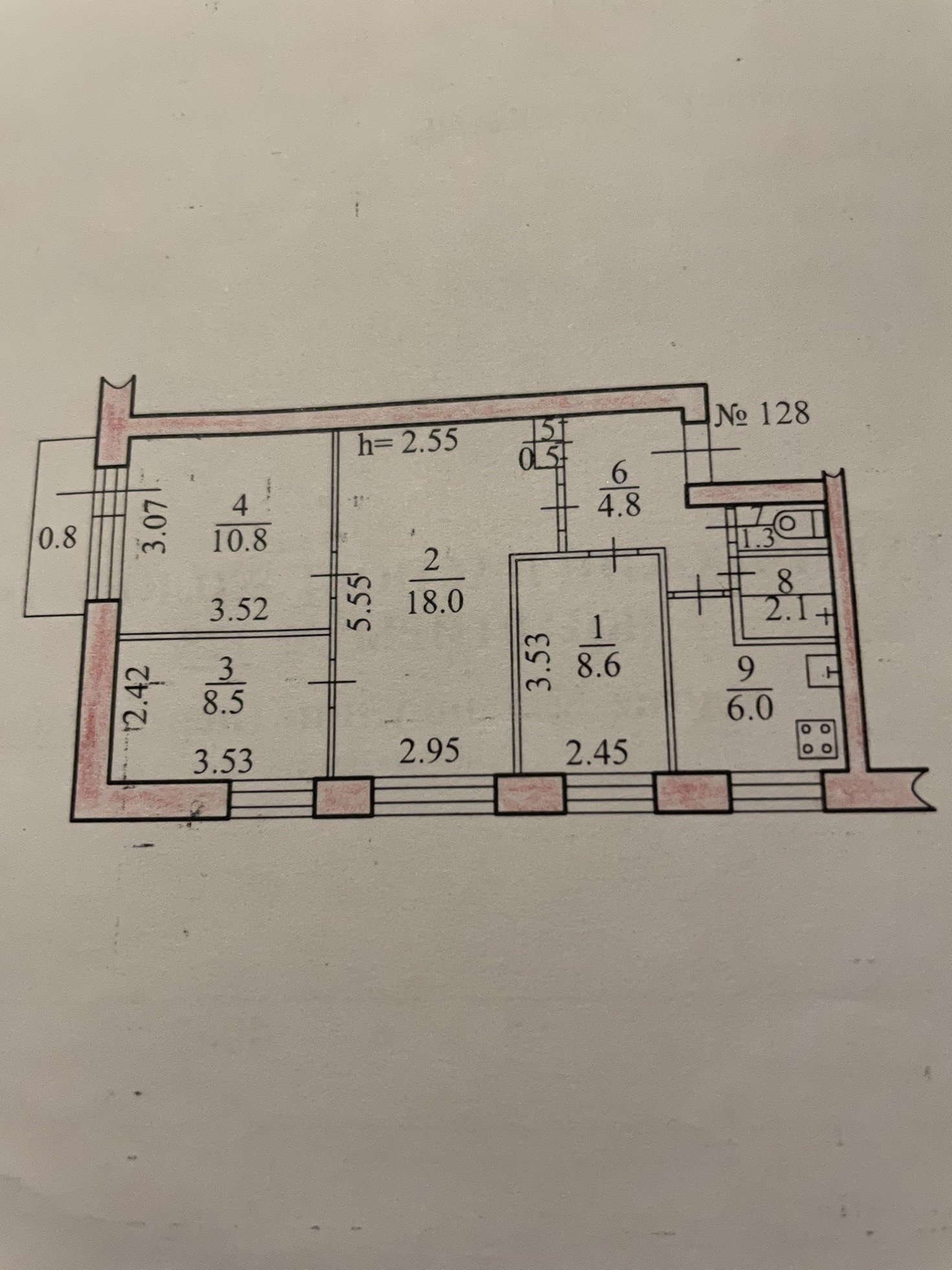Площадь кухни 6 м2
