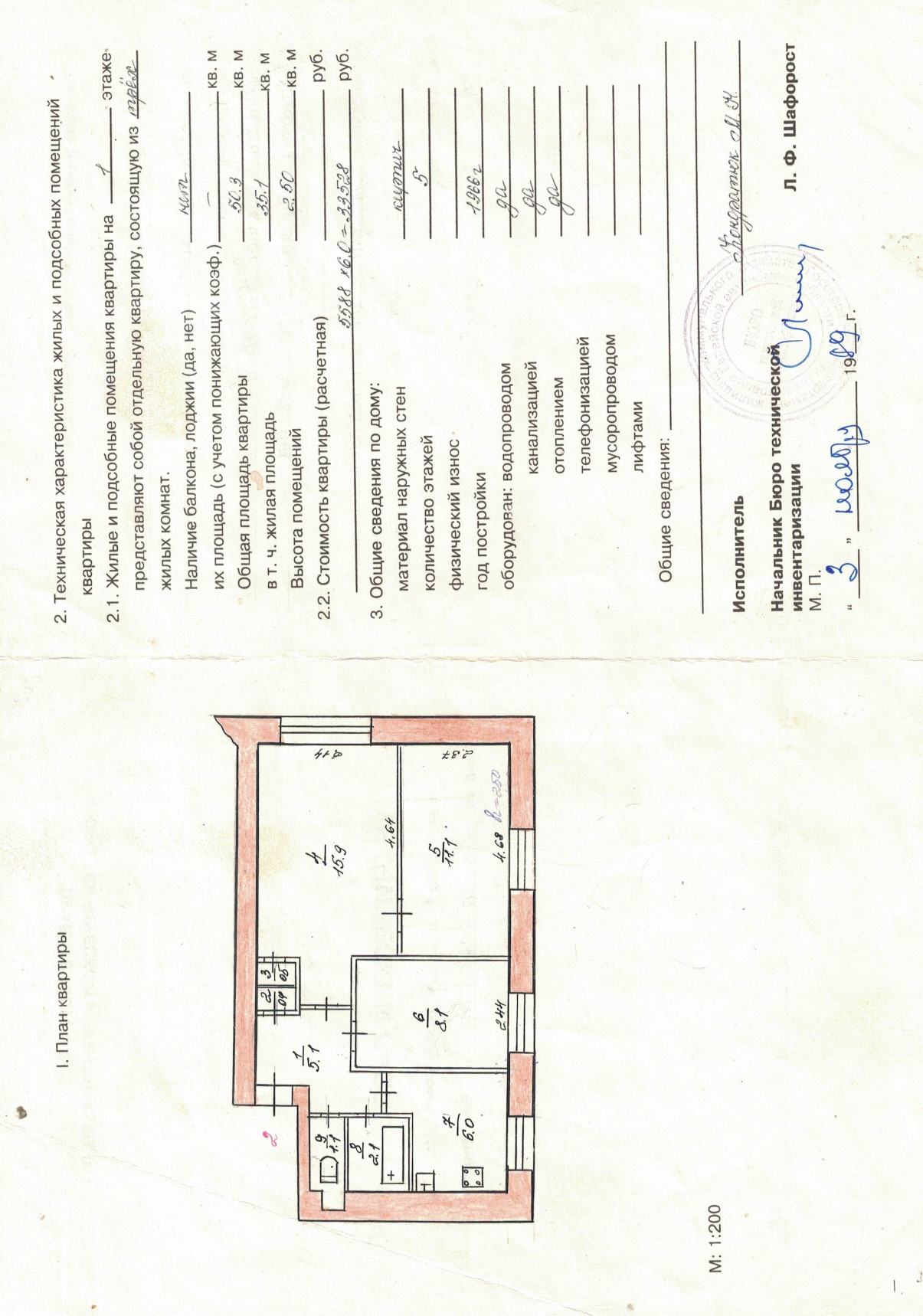 Жилая площадь 35.1 м2