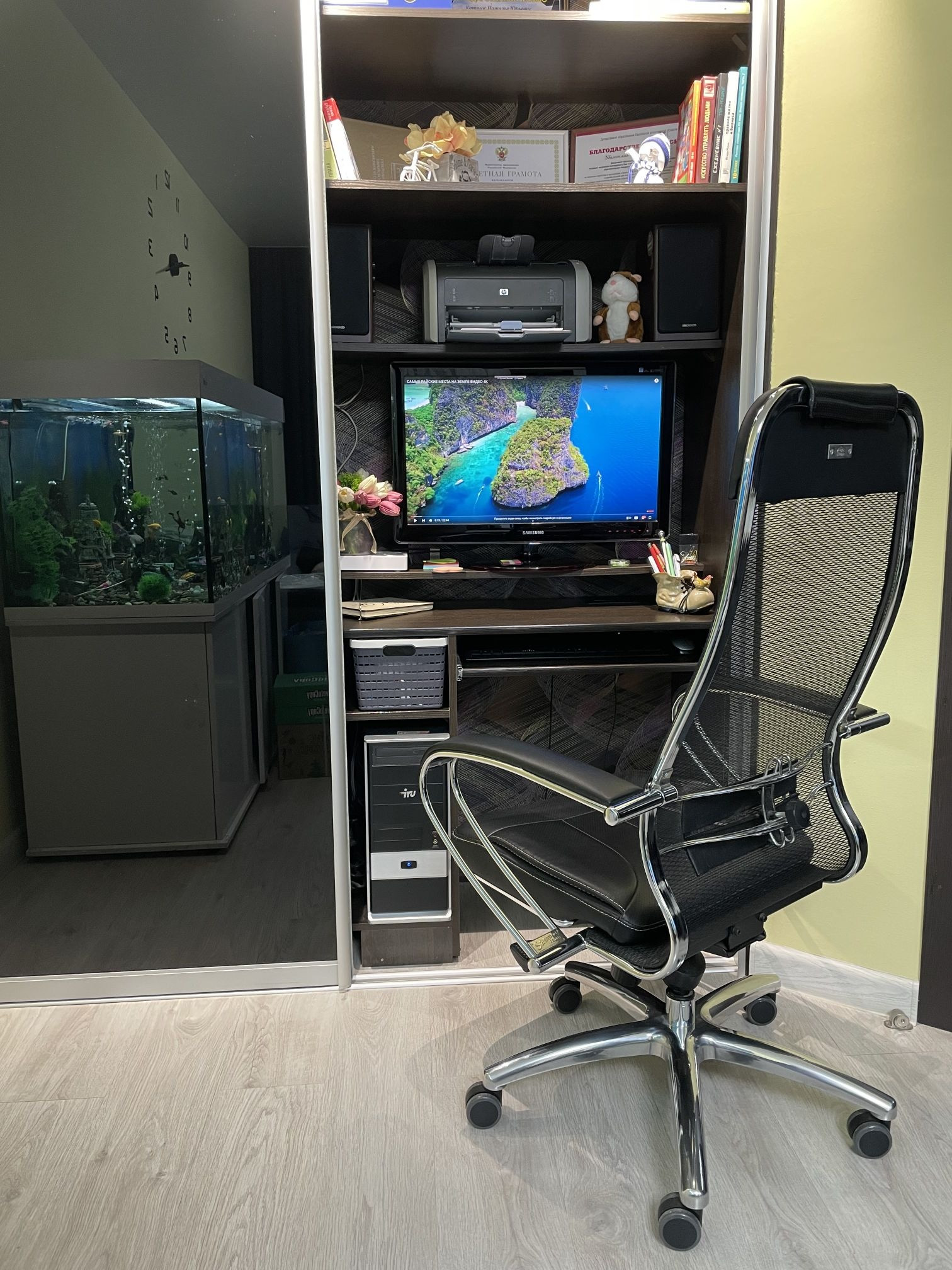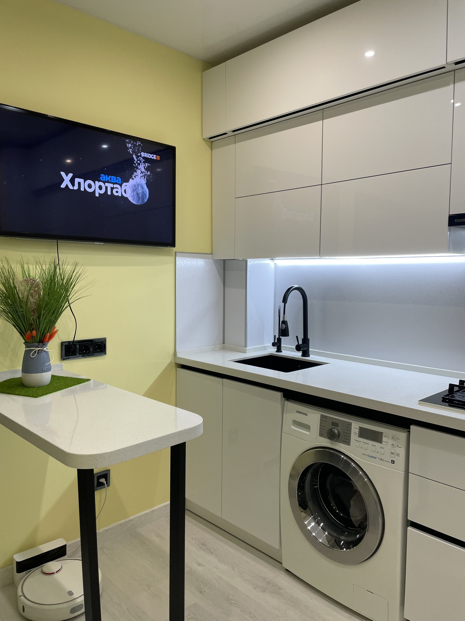 Новому собственнику остаются встроенные шкафы в гостиной, спальне и прихожей; кондиционер; водонагреватель, установленный на случай отключения горячей воды.