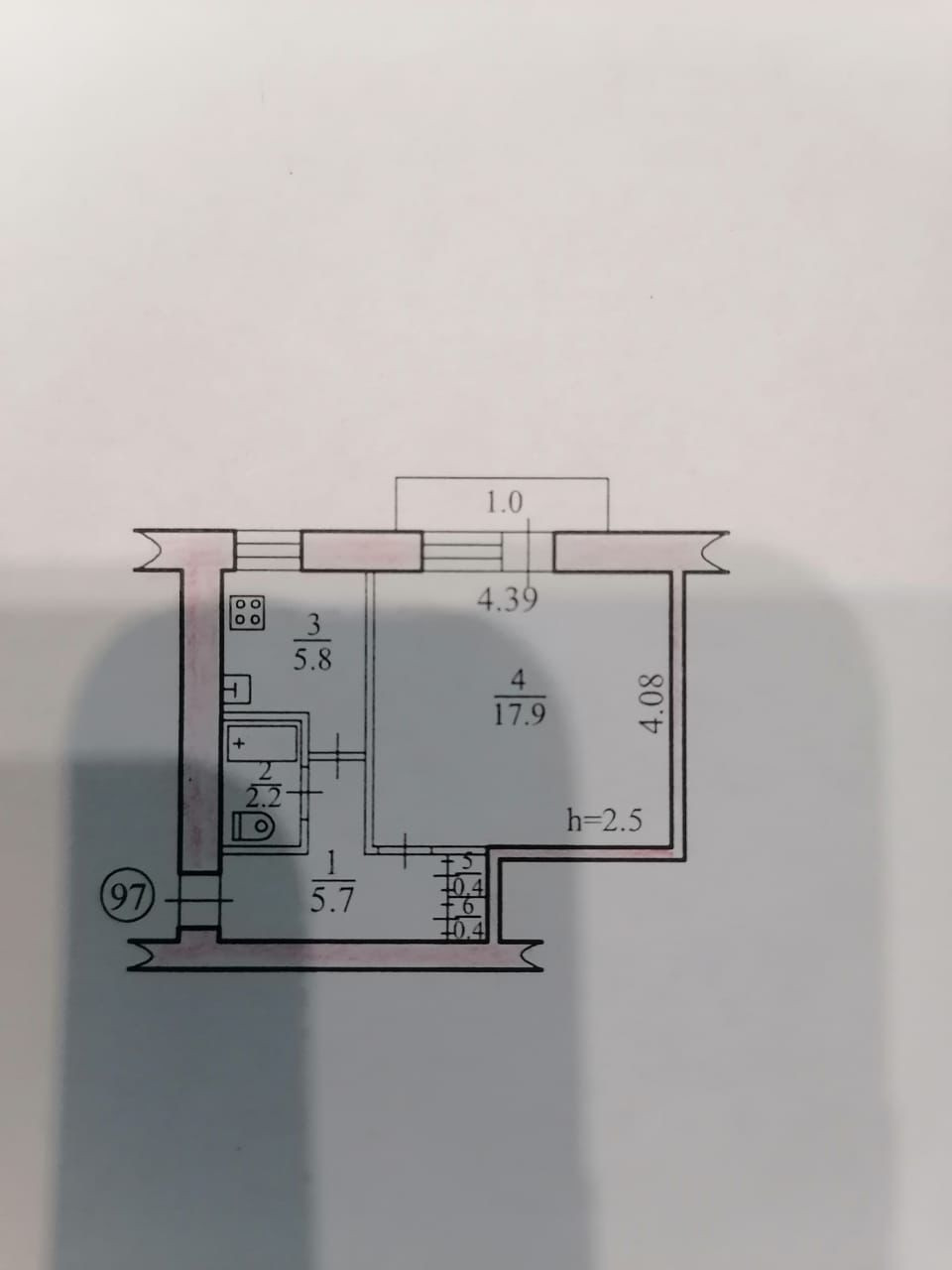Площадь кухни 5.8 м2