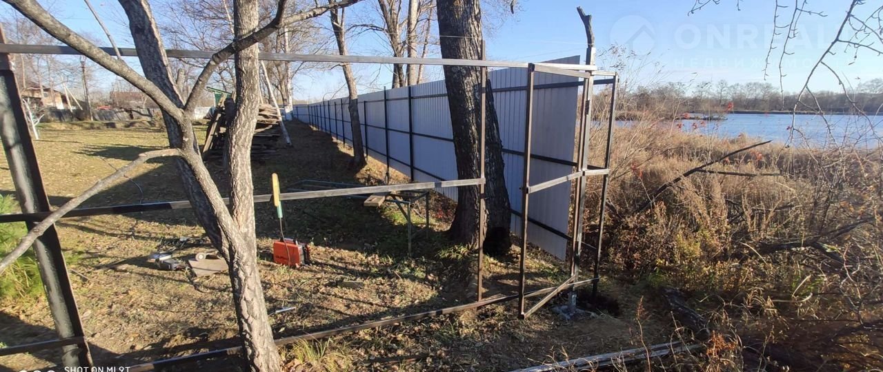 Ленточный фундамент 6*8 залит в 2021 году, под фундаментом гравийная засыпка 9*16 метров и 2.7-3.0 метра в глубину. Металлический склад на фундаменте размером 4*4. В 2020 участок с лицевой стороны обнесен забором из профлиста на усиленном столбчатом заливном фундаменте, протяженностью около 70 метров. От ворот участка до озера около 50 метров.