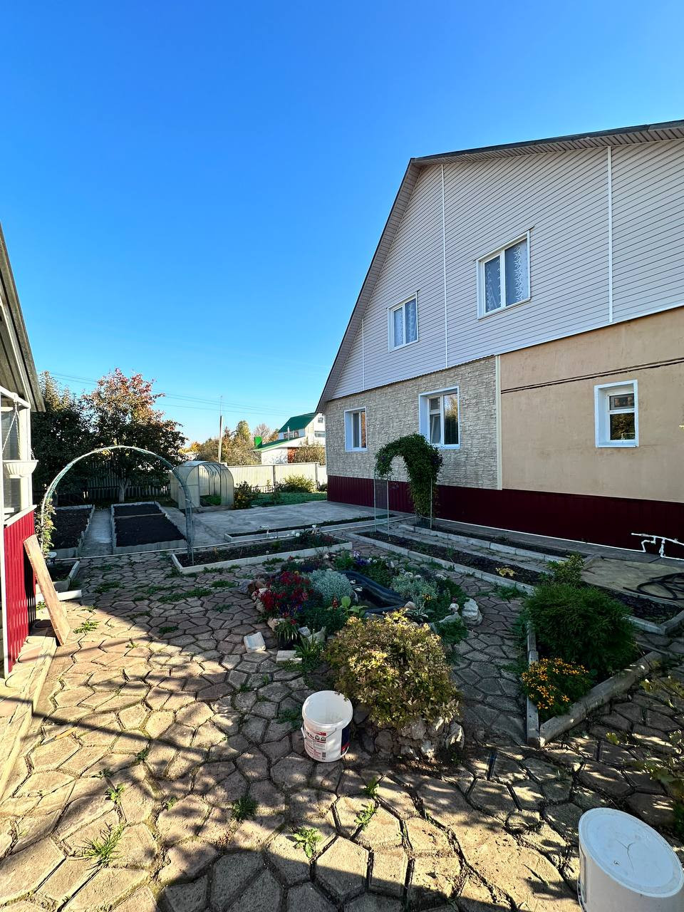 Нa учаcткe имеется гараж, баня, беседка, хоз.блок. Плодоносящие деревья. Есть парковочные места. Вход в дом возможен с двух сторон.