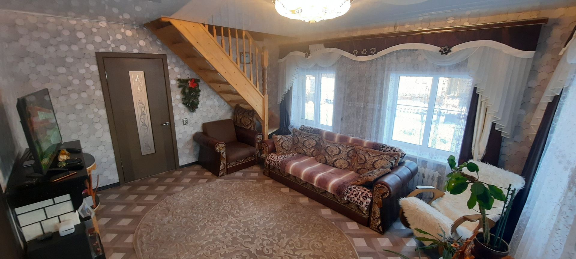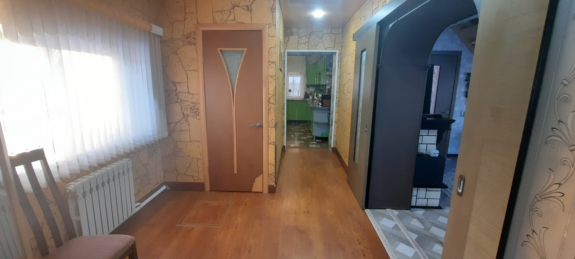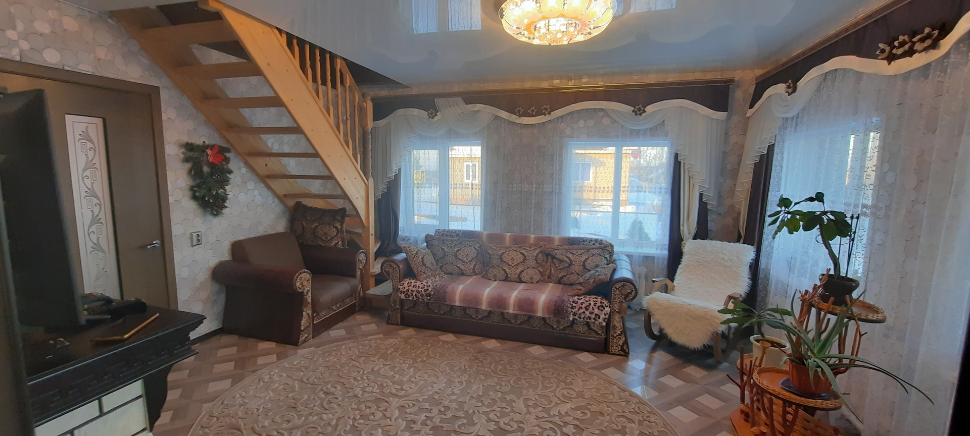 На 1 этаже – зал, спальная комната, кухня, душевая, сан.узел, просторная прихожая, коридор и большая застекленная терасса 8*3м.