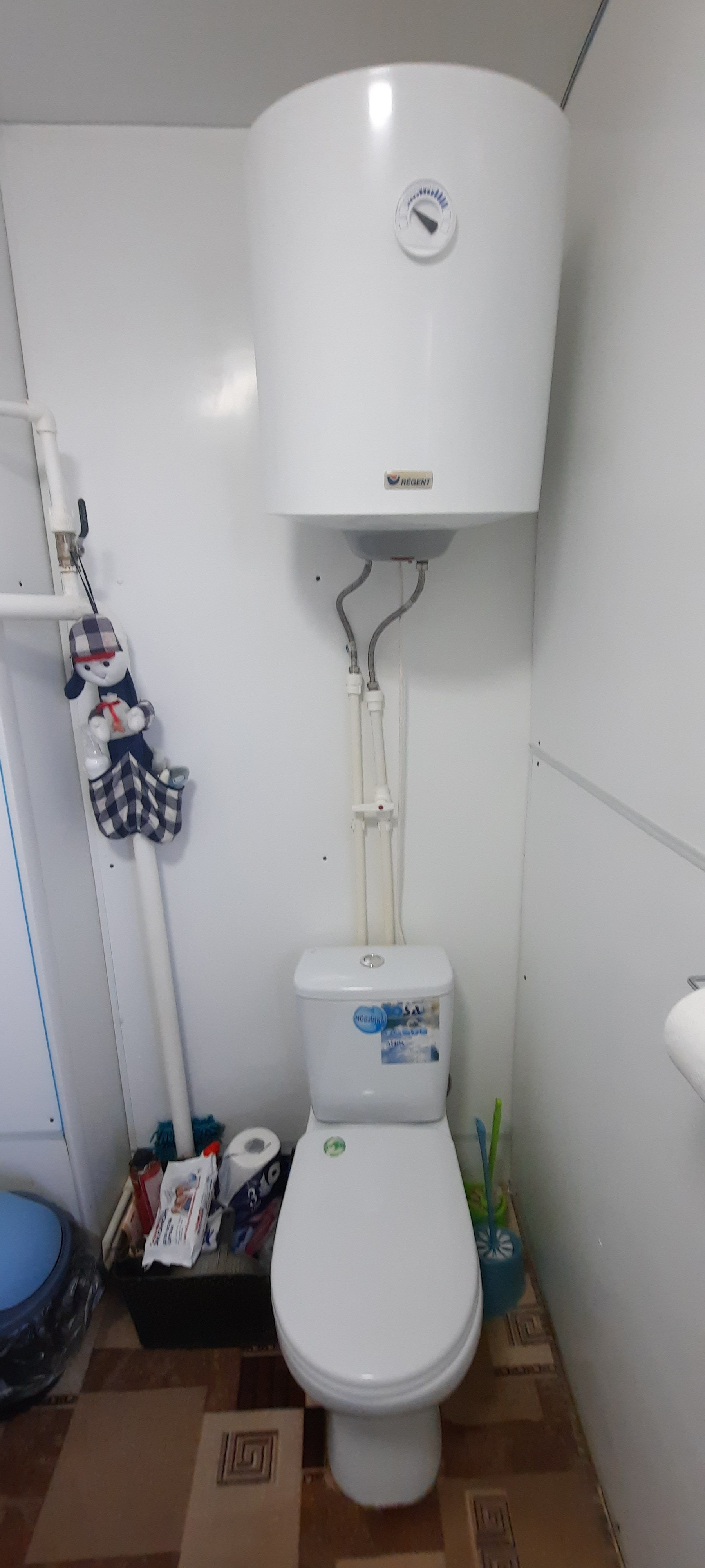К дому подведены все коммуникации - газовое индивидуальное отопление, вода центральная и есть своя скважина глубиной 24 метра (расположена на террассе), горячая вода от газового котла (есть также электрический водонагреватель), электричество 380 Вт, местная канализация шамбо, интернет.