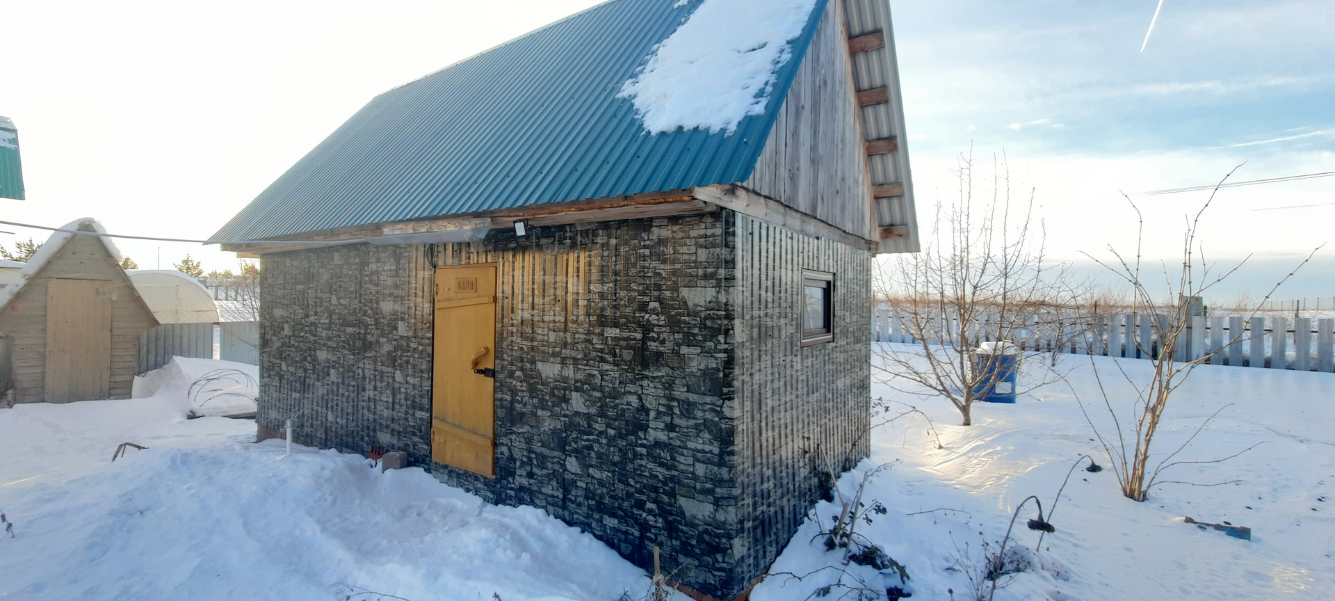На земельном участке 9 соток располагаются баня из бруса 3*6м с большим предбанником (топи-мойся), теплица 3*4м, уличный туалет, под одной крышей - просторный гараж на 2 автомобиля с автоматическими воротами (перед гаражом подъездные пути забетонированы), дровяник и хоз.блок.