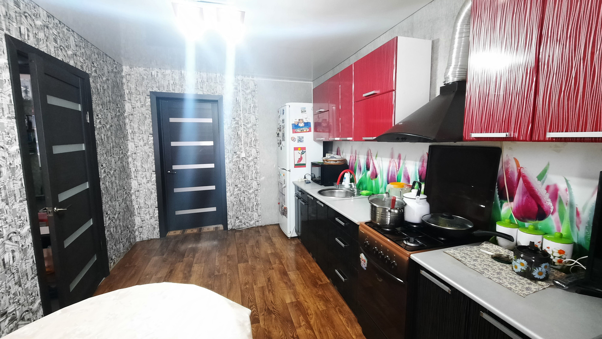 Новым собственникам в качестве бонуса остается встроенный кухонный гарнитур и душевая кабинка.