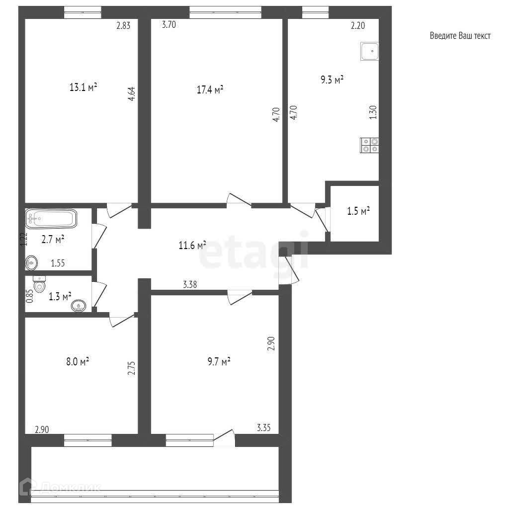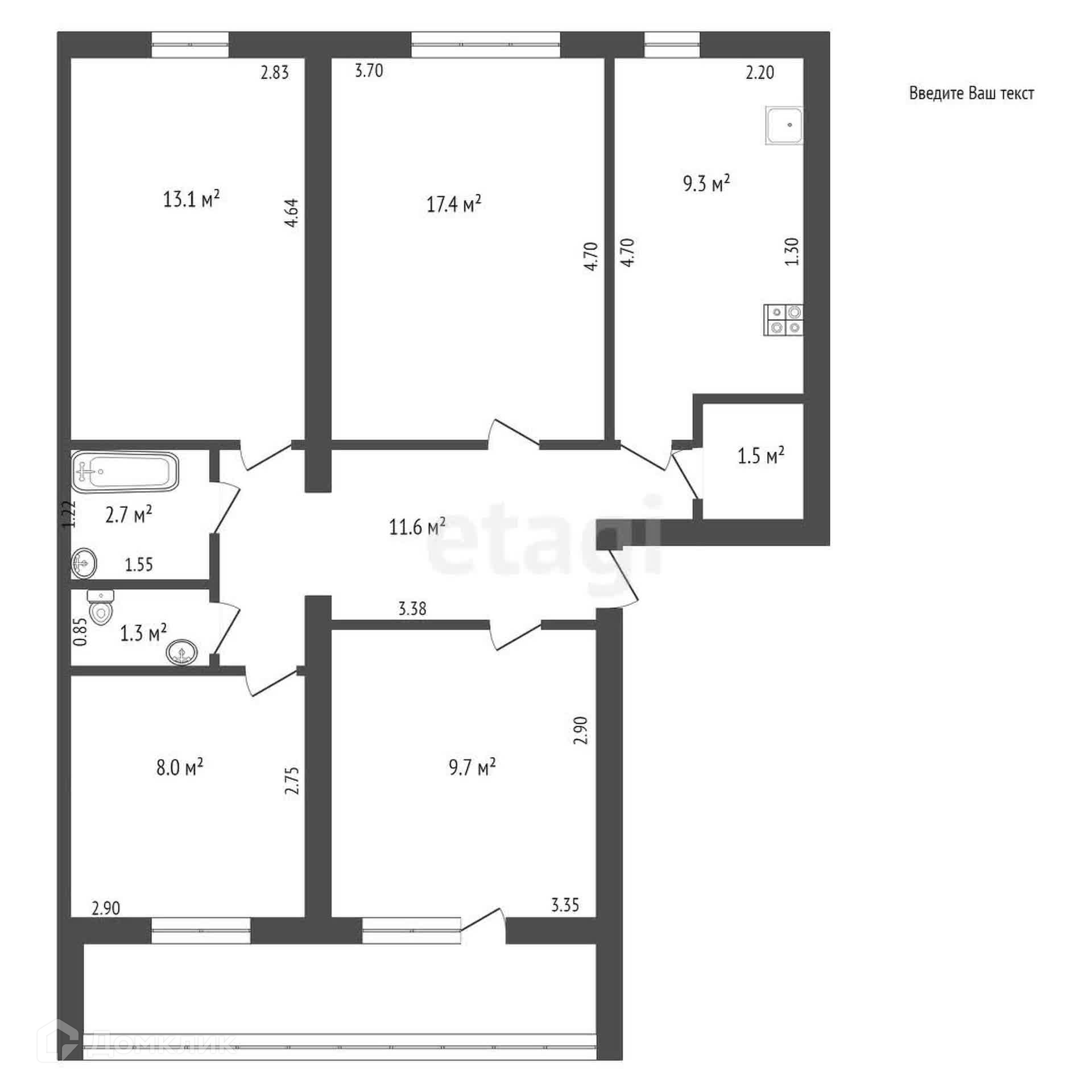 Общая площадь 74.6 м2