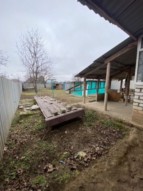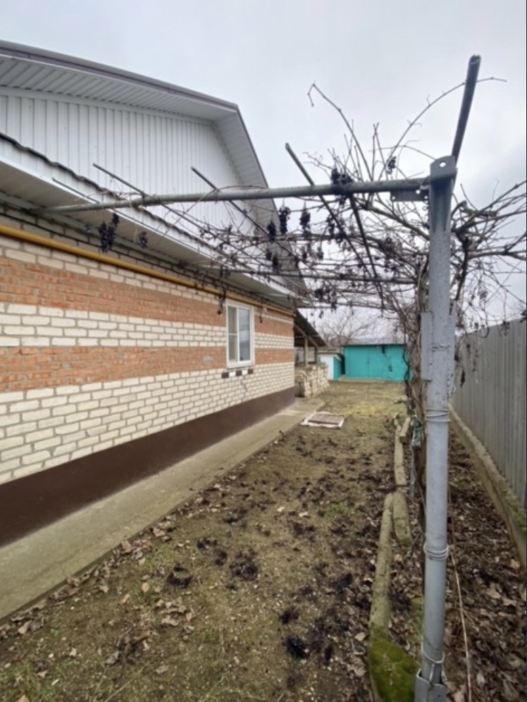 Земельный участок и дом полностью огорожен забором. На территории имеются гараж, сарай доя садовых инструментов, погреб. Выведен во двор кран для полива растений и деревьев, разбиты участки для посадки садовых культур. Посажены фруктовые деревья ( черешня, абрикос), виноград, кусты смородины, клумба с клубникой). Также имеешься запасной выход со стороны огорода.