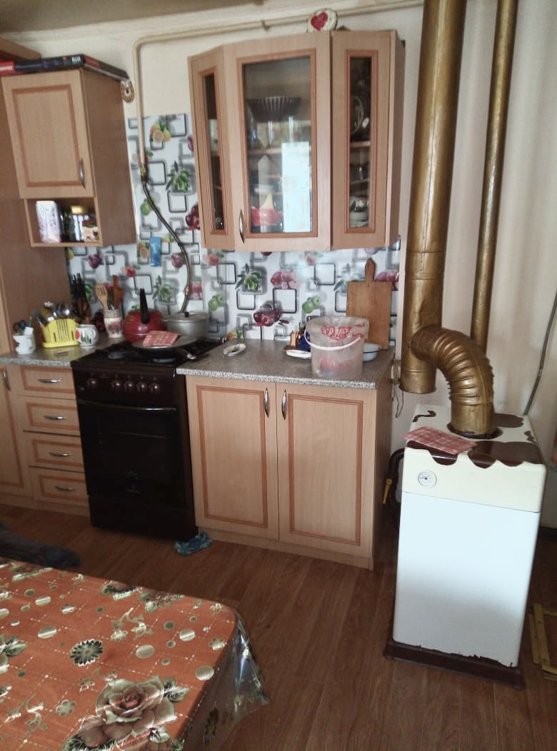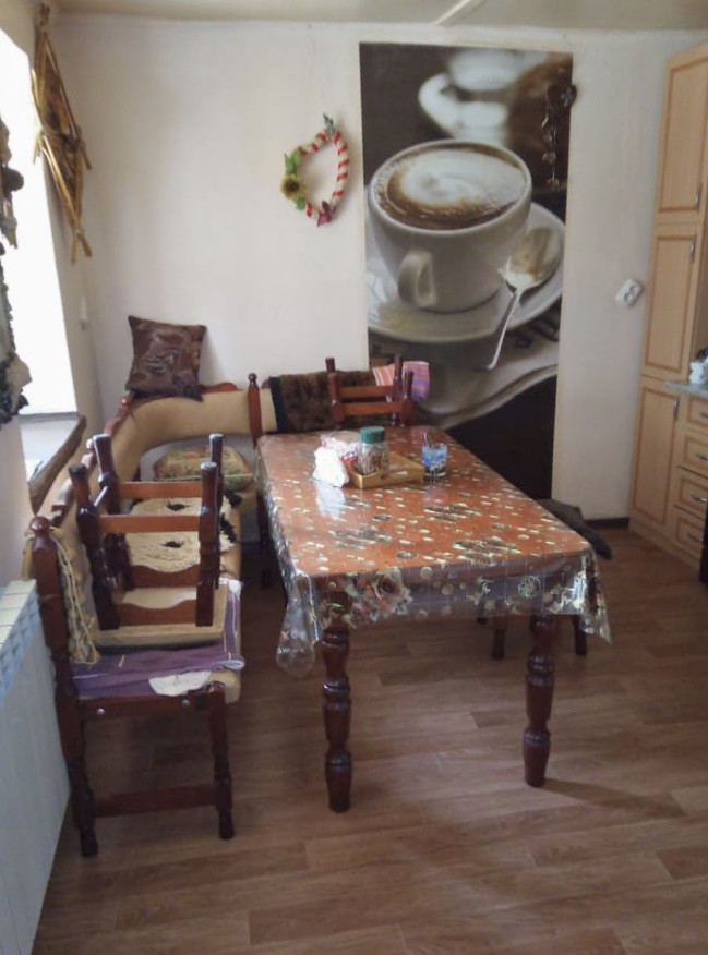 Кухня и ванная комната расположены во дворе, отдельно от дома. В жилом доме коридор и жилые комнаты. Свежий ремонт, высокие, натяжные потолки. Пластиковый стекло пакет. Проблем с проводкой и трубами нет, недавно менялись счетчики на все коммуникации. Мебель остается частично, по договоренности.