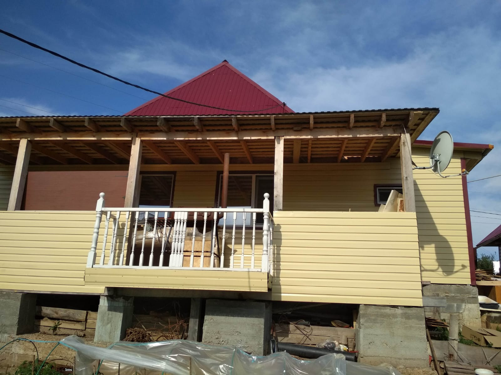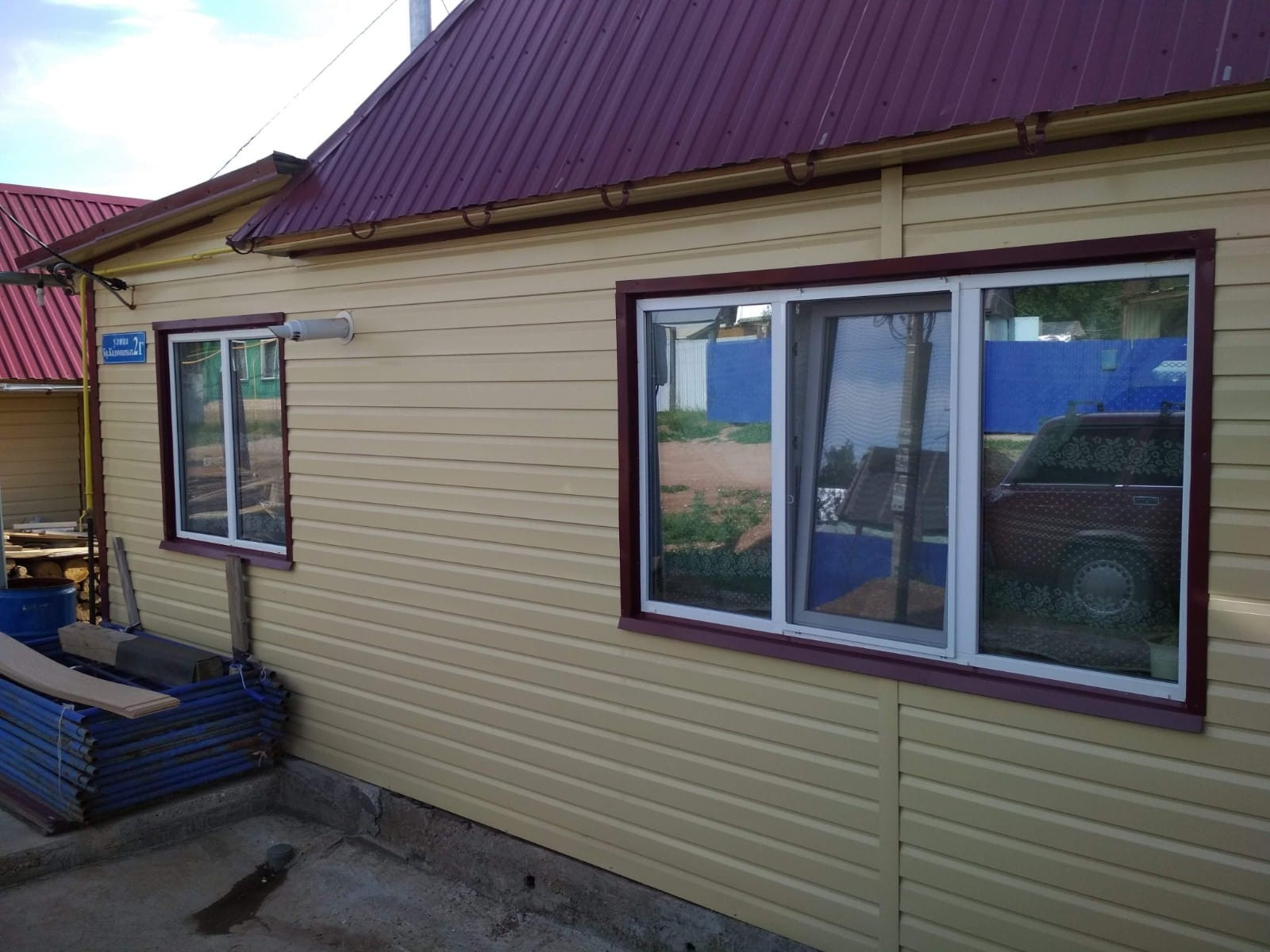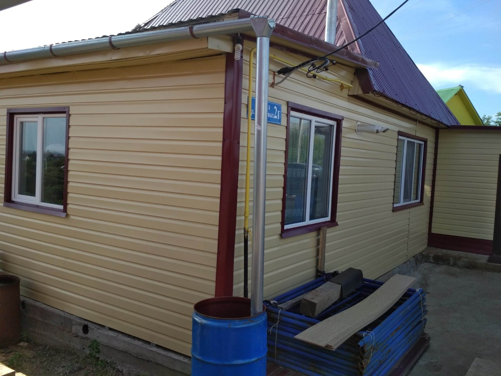 Дом одноэтажный из бруса 150/150, утеплен и обшит металлосайдингом, фундамент лентчный, крыша профнастил, отличный ремонт, потолки натяжные, окна и балкон пластиковые, две металлические входные двери, установлены межкомнатные двери, стены обшиты гипсокартонном, обои хорошего качества, на часть стен нанесена венецианская штукатурка, центральное водо-газоснабжение. Общая площадь земельного участка 6,5 соток, имеется место для строительства гаража. Подъезд к дому удобный по центральной дороге. Инфраструктура развита: рядом новая школа, детский сад, две аптеки, магазины, Водоканал. Один собственник, чистая продажа, ключи в день сделки. В остается часть мебели.