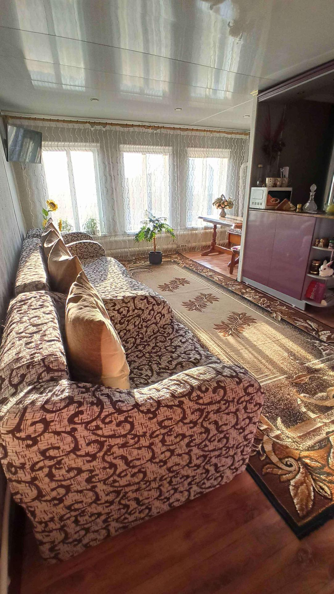 Продаётся дом с земельным участком, тёплый, из бруса, одноэтажный, площадью 109 кв. м., расположен в черте города Благовещенска, по улице Точисского. Подойдёт для большой семьи, которая предпочитает уют и свободу. В доме просторная кухня - гостинная, санузел, 3 спальни. Дом построен из бруса, обшит сайдингом, установлены окна ПВХ. Отопление газовое, водоснабжение и канализация центральные. В доме свежий ремонт, частично остаётся мебель.