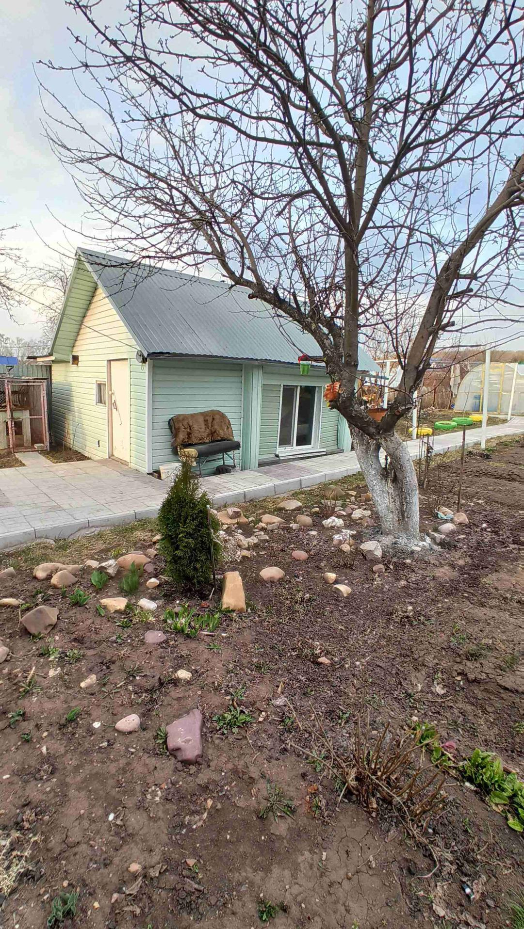 На участке имеются надворные постройки: новая баня с водоснабжением, гараж с погребом, беседка, дровенник, теплица, хоз. постройки. Во дворе выложена тротуарная плитка.