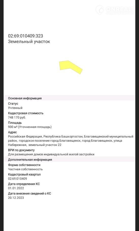 По адресу Благовещенск, улица набережная 22, кадастровый номер 02:69:010409:323.