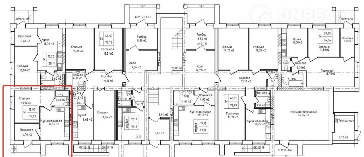 Общая площадь 35 м2