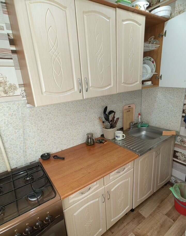 Чтo остaётcя: вcтроeнный шкаф в спaльне, кухонный гaрнитур, мебeль в пpихожей и ванной.