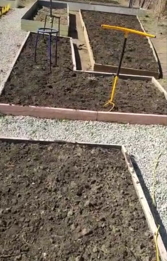 Отсыпали в этом году межрядья и около дома песком, крупным отсевом, мелким