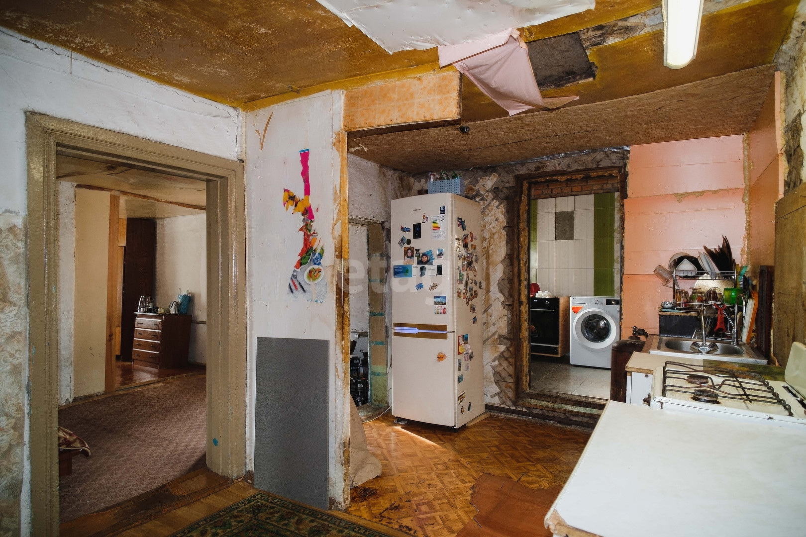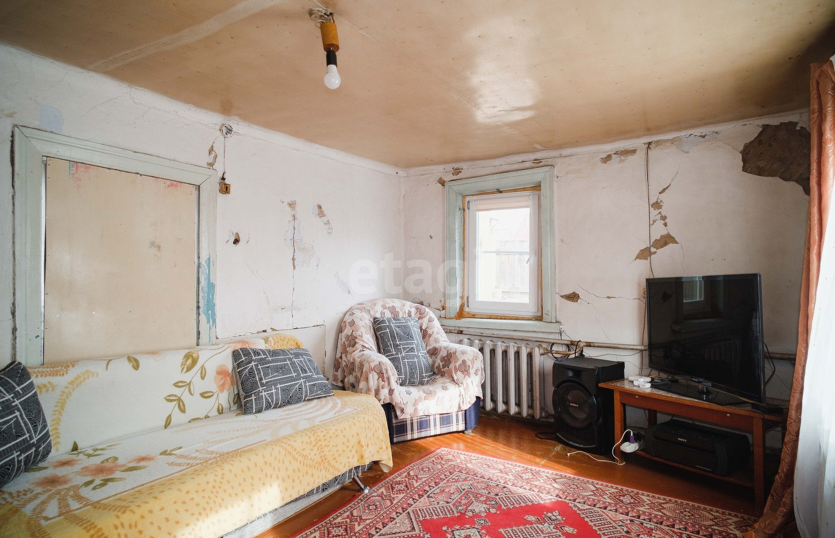 Дом подлежит плановой реконструкции, для этого подготовлен основательный ленточный фундамент и выполнен капитальная перестройка крыши (металлочерепица), возведен второй этаж дома.