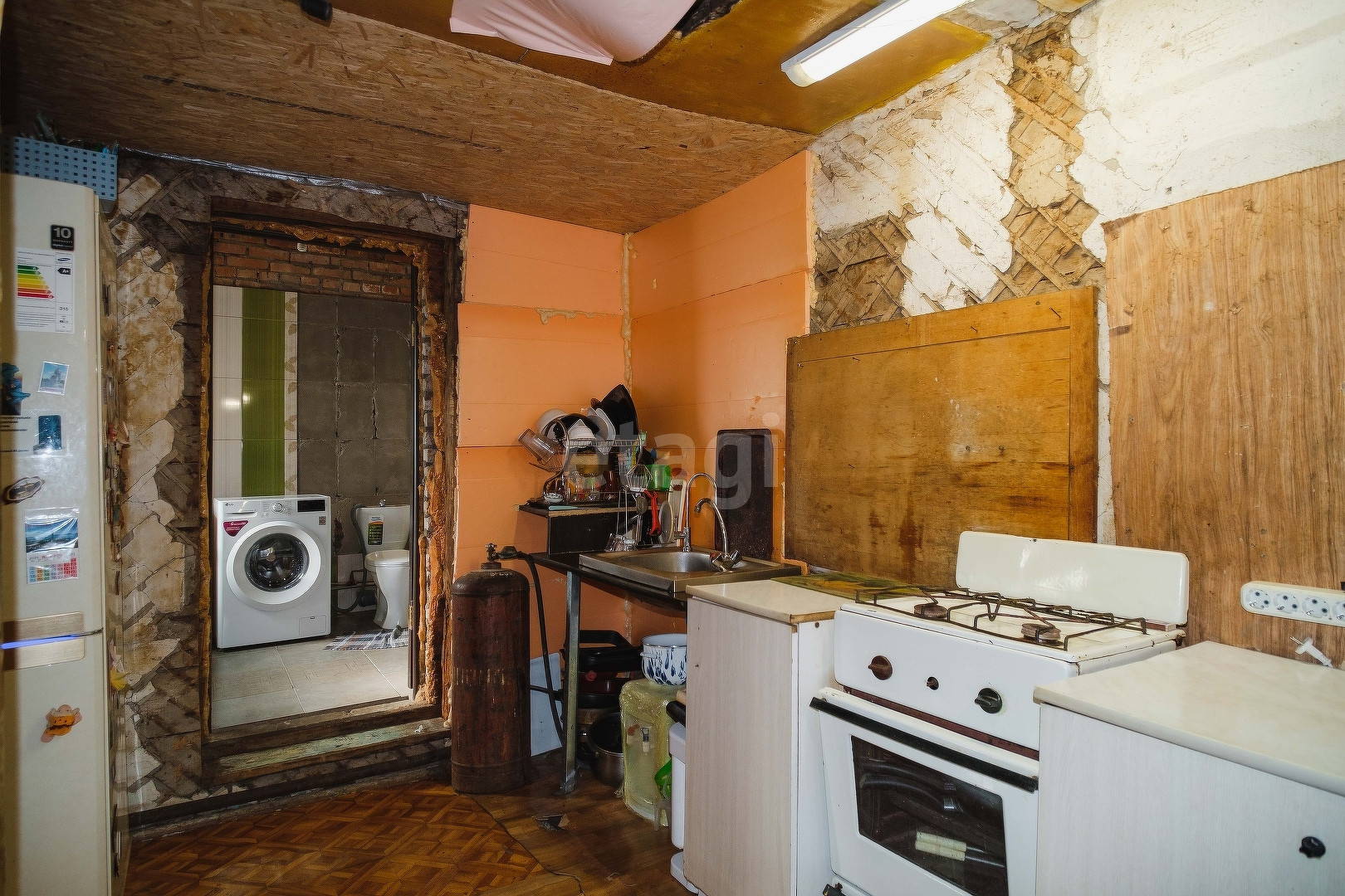 В настоящий момент дом состоит из 2-х комнат, кухни и пристроенной ванной комнаты.