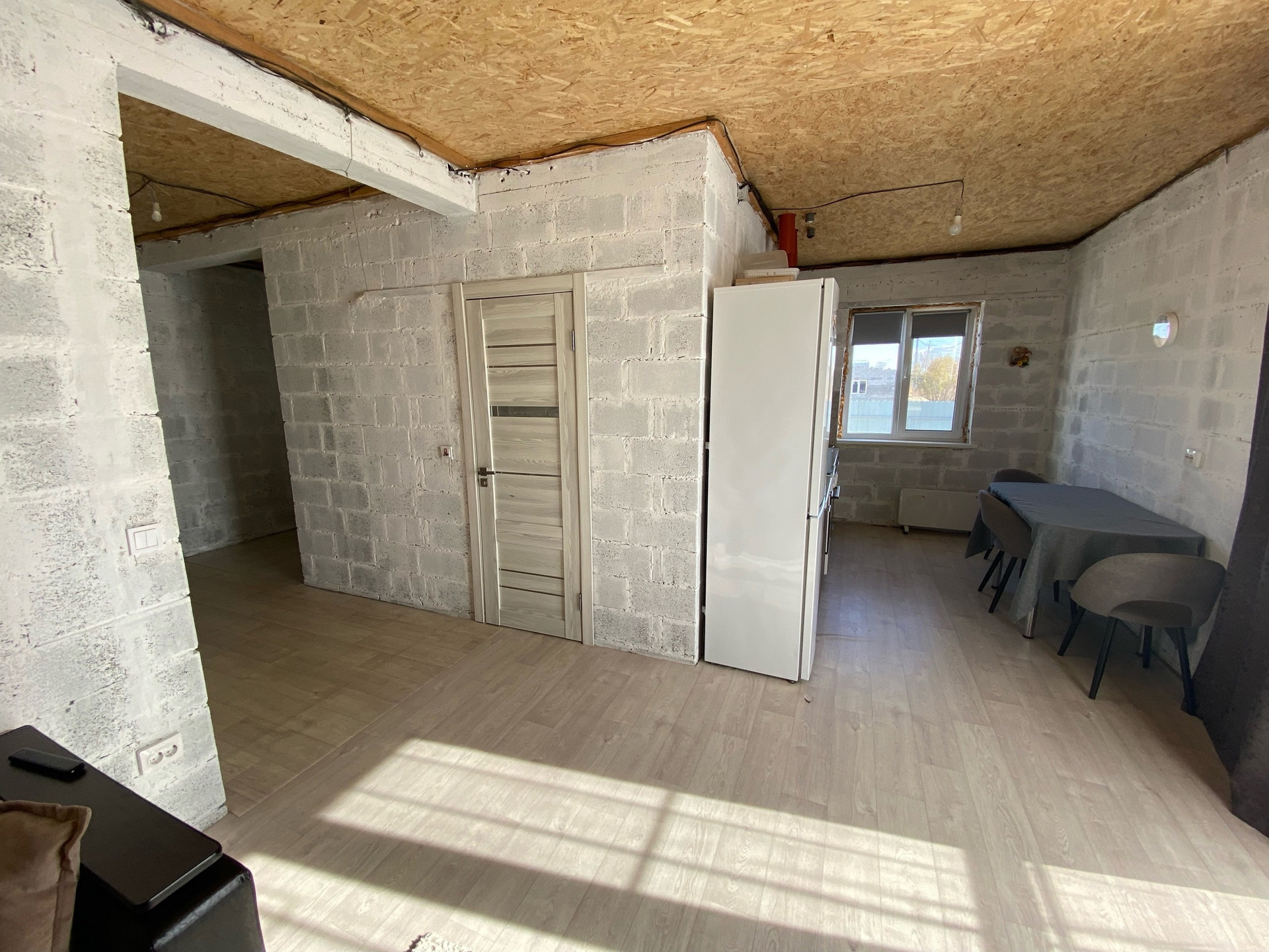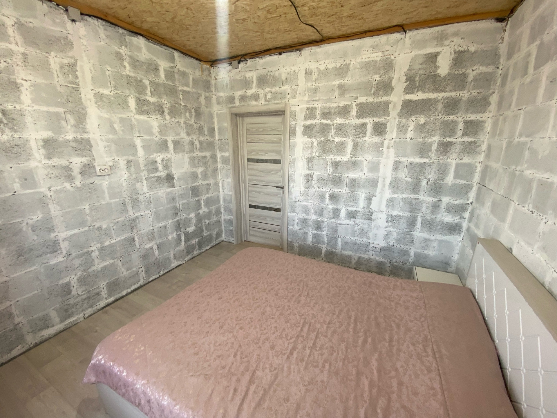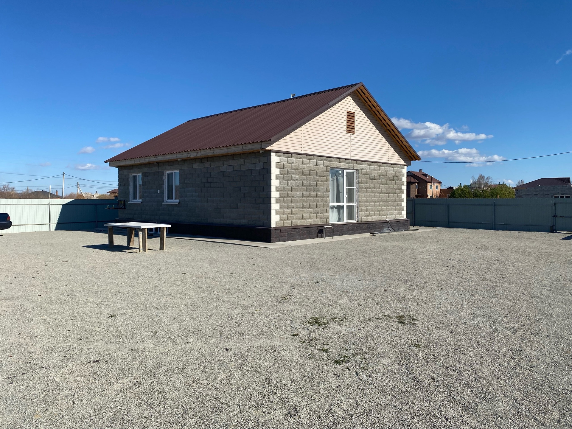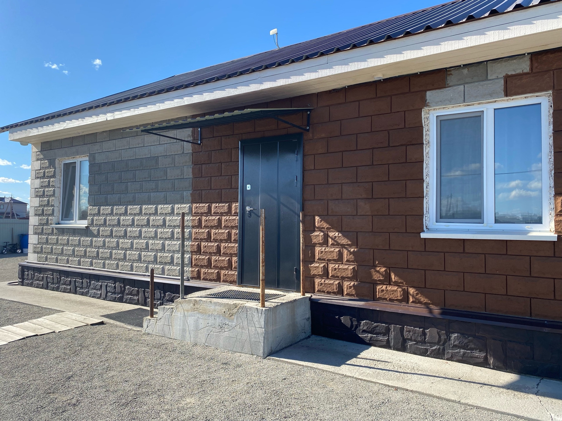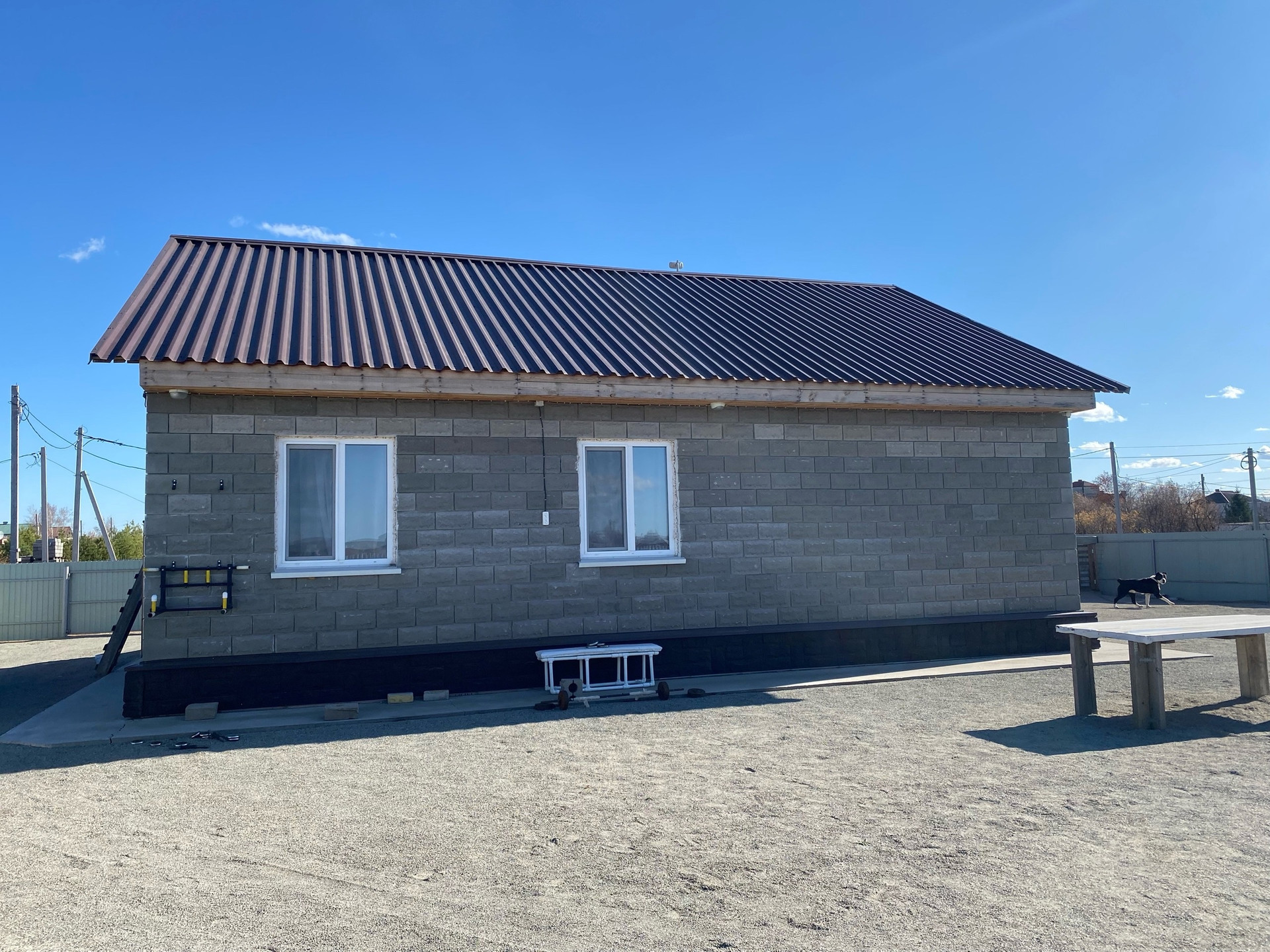 Дом построен из пескоблока.
