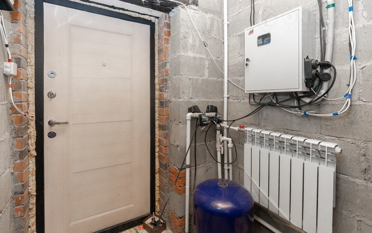 Тёплый пол по всему первому этажу, на втором — радиаторы. Электрический котел ZОТА 12 кВт, предусмотрено подключение твердотопливного котла.