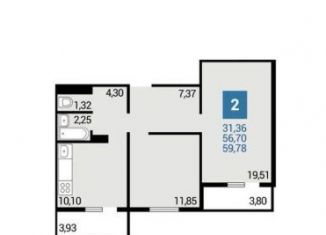 2-ком. квартира на продажу, 59.8 м2, улица Ленина, 231