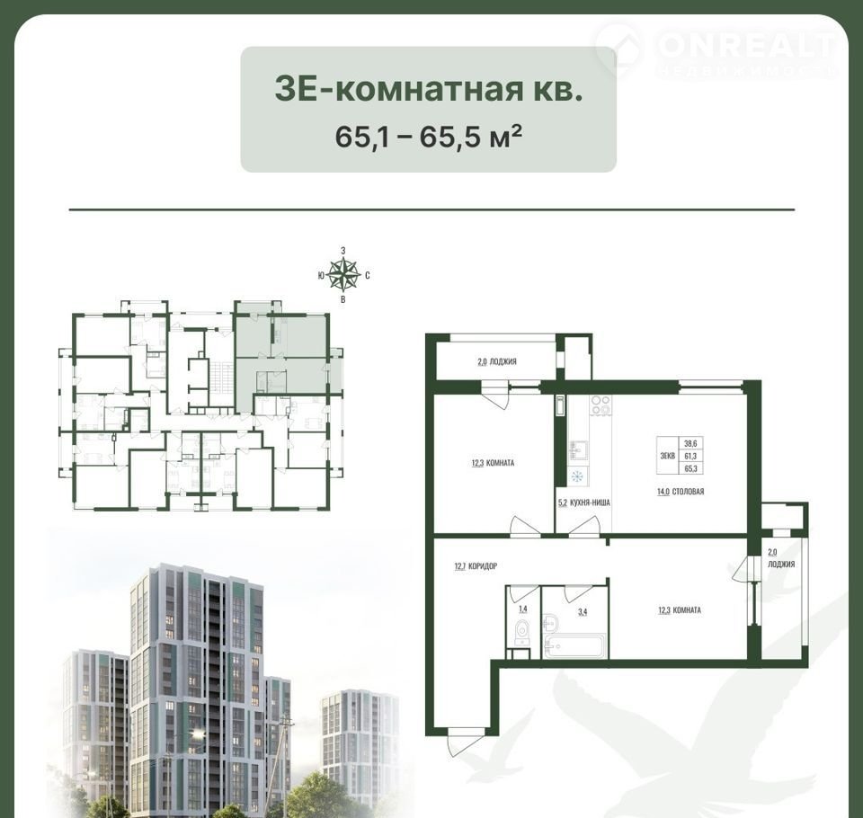 Общая площадь 65.1 м2