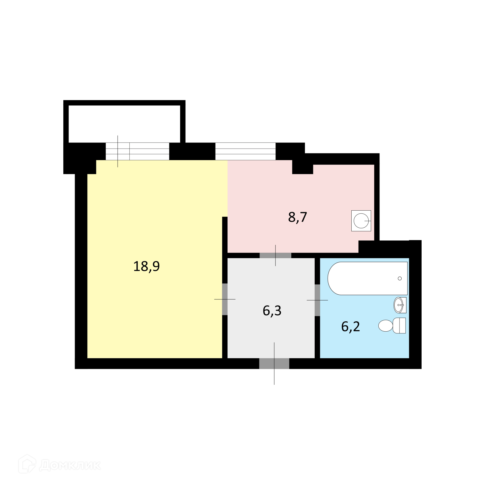 Балкон, лоджия 1 балкон