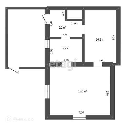 Общая площадь 28.5 м2
