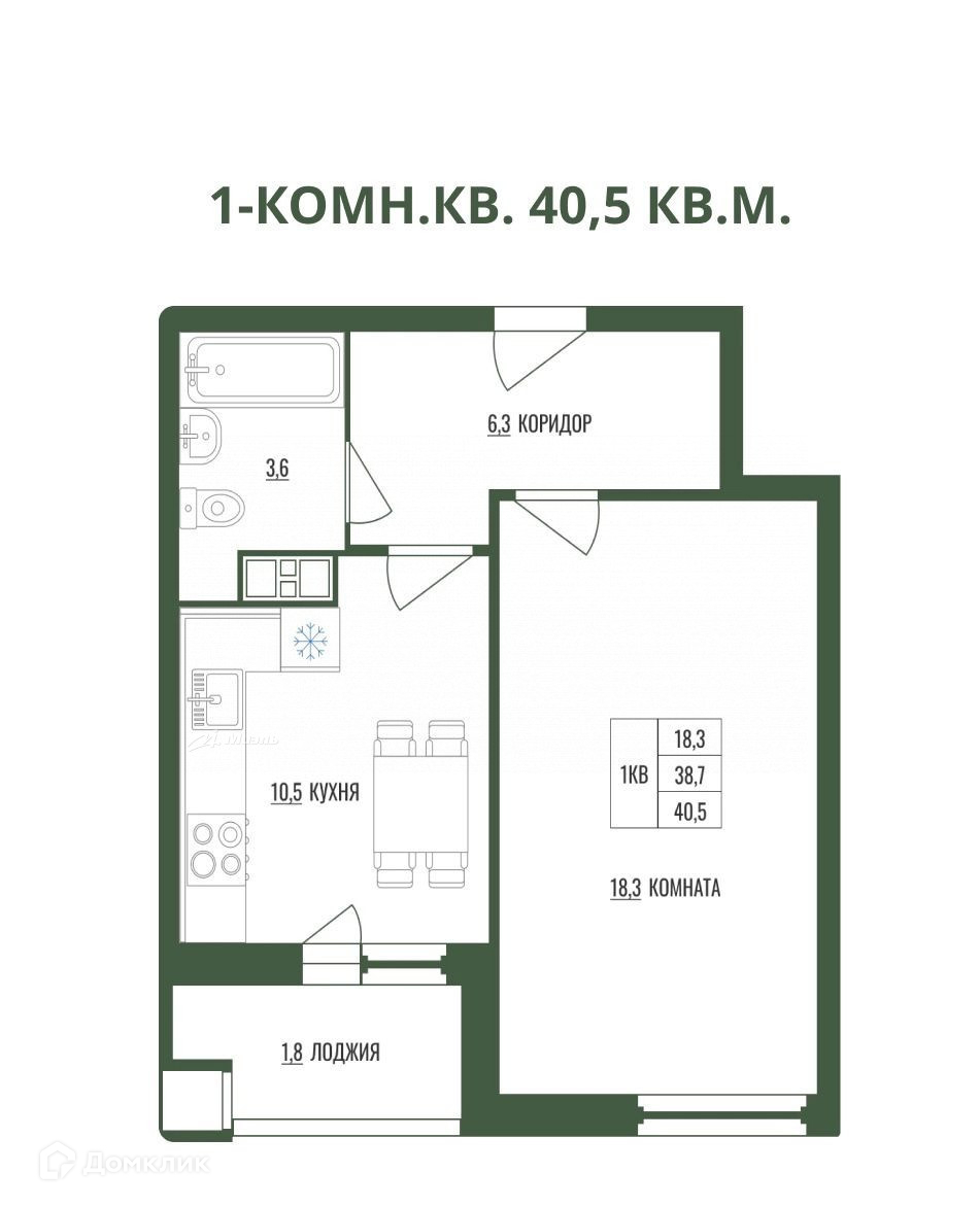Общая площадь 40.5 м2