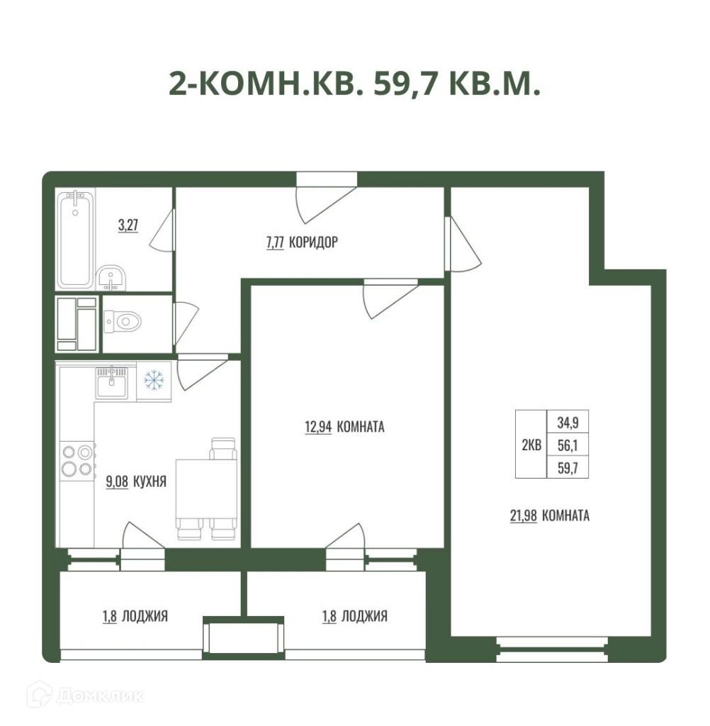 Общая площадь 60 м2