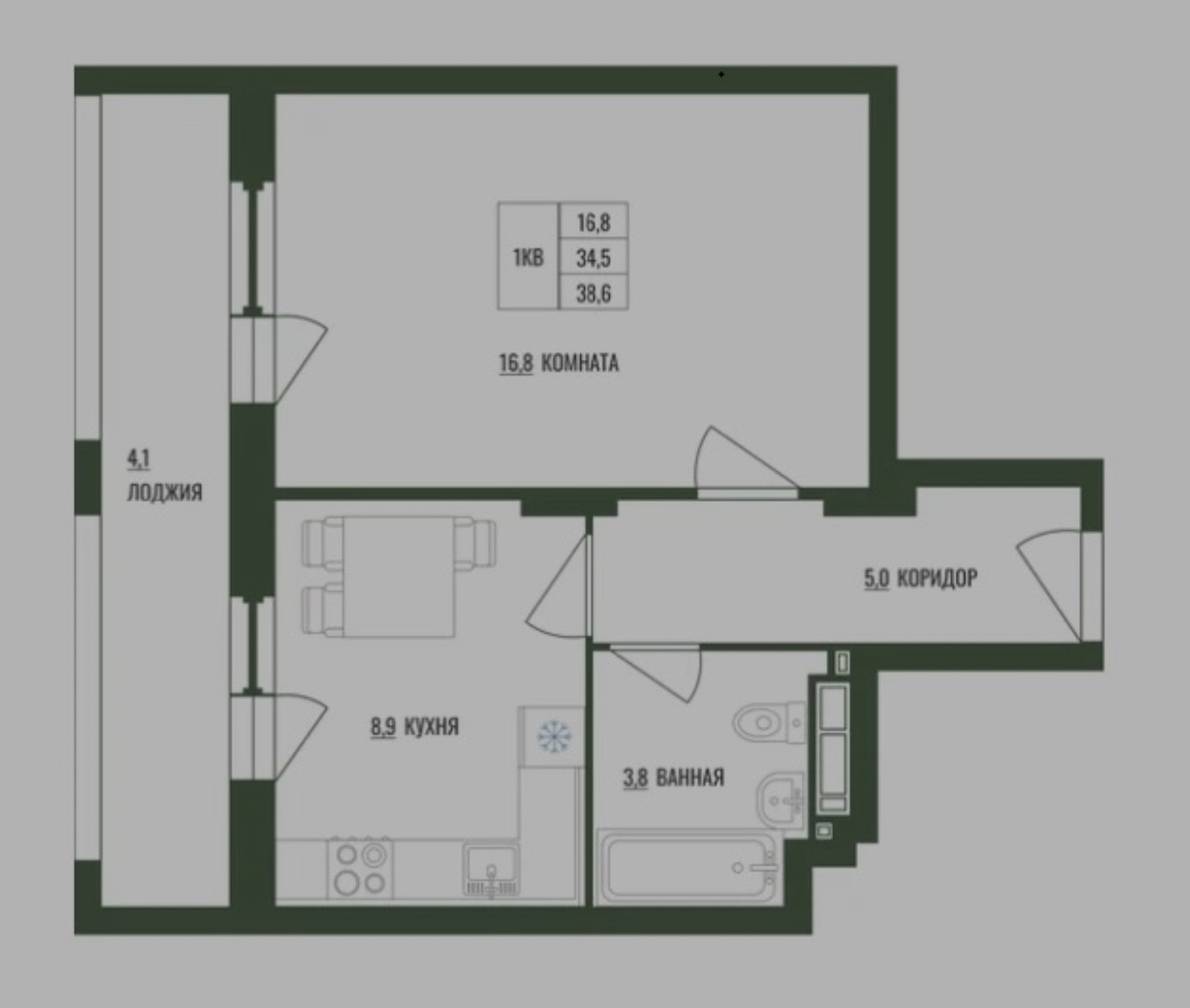 Площадь кухни 8.9 м2