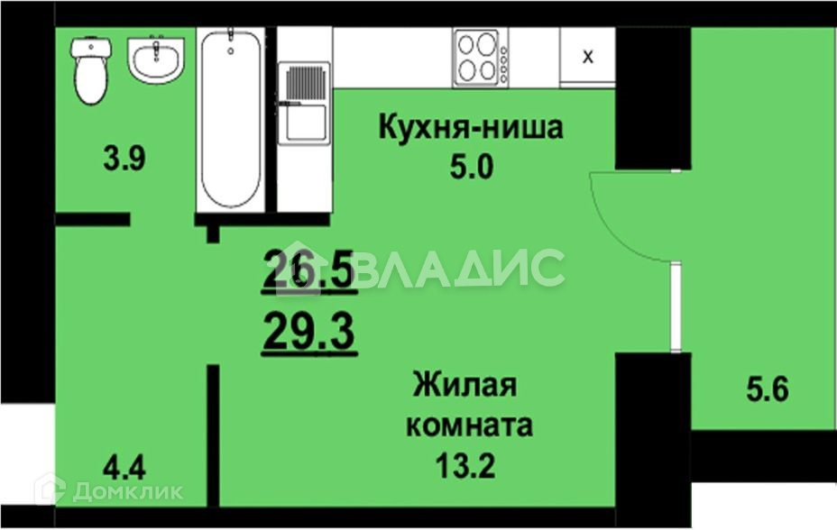 Общая площадь 29.3 м2