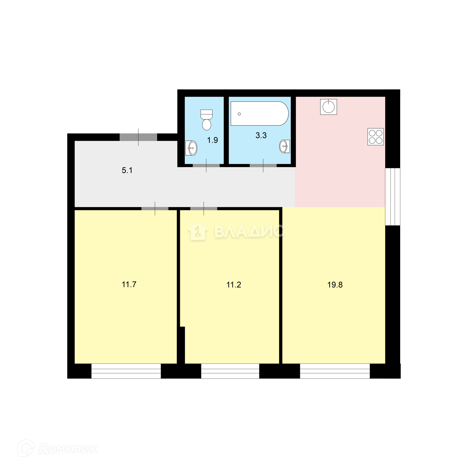 Главным плюсом данной квартиры является кухня-гостиная площадью 19,8 кв.м, что с легкостью позволит вам спланировать ещё одну отдельную комнату! Итого вы получите в каждой комнате по отдельному окну и даже в кухне!
