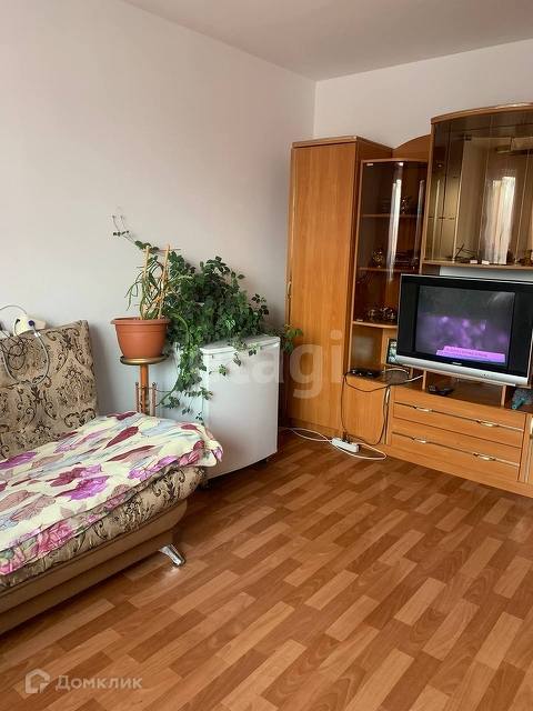 В квартире выполнен косметический ремонт. Новому собственнику передается большая комната и часть общих помещений в квартире. По договоренности остается мебель и техника.